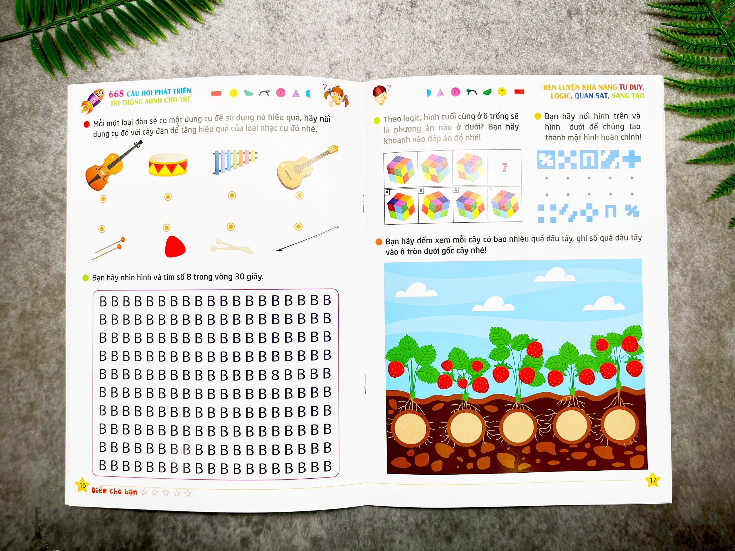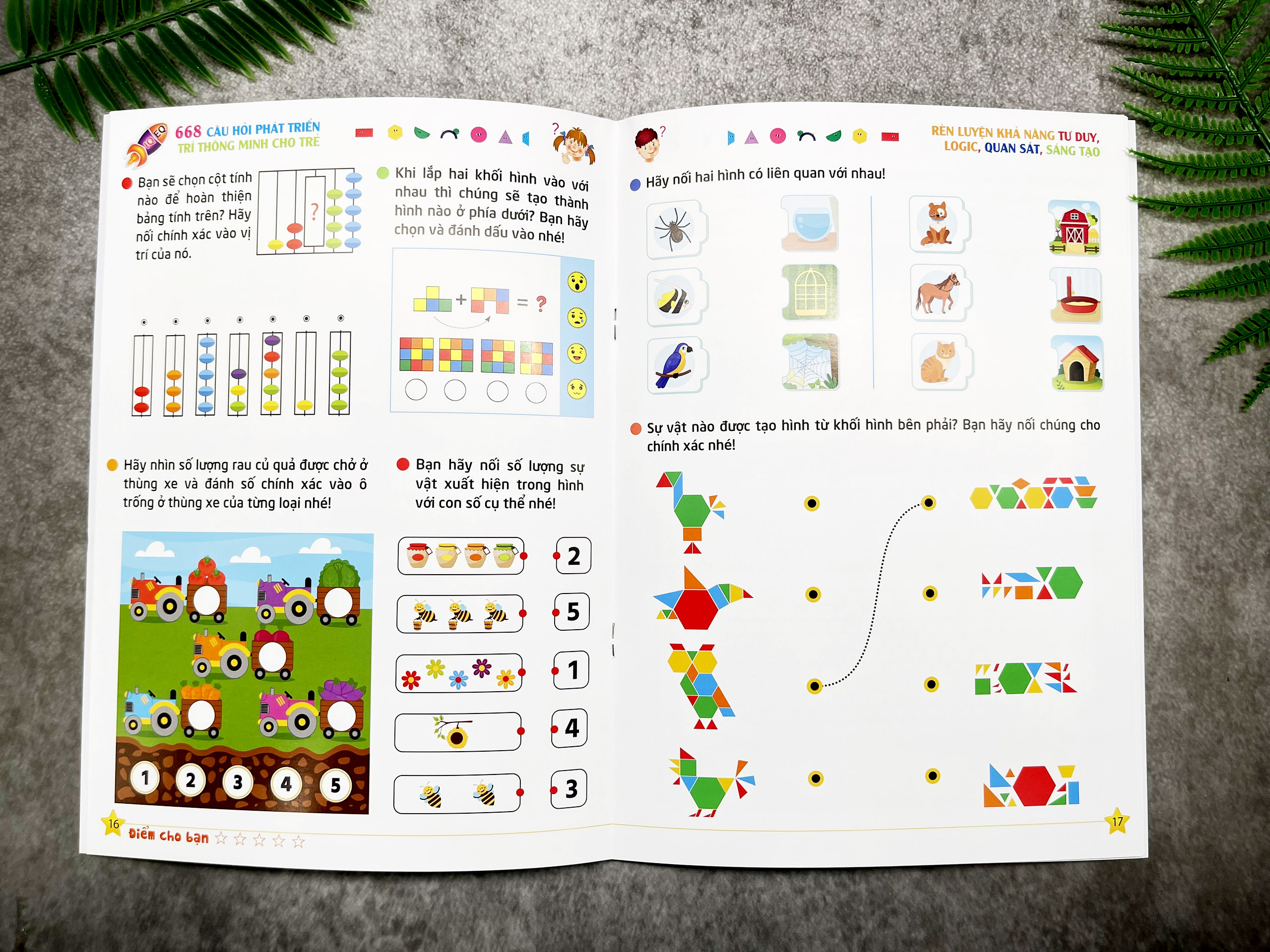 - Bộ Sách 668 Câu hỏi phát triển trí thông minh cho trẻ nhằm phát triển IQ,EQ, Cung cấp những trò chơi toán học úp trẻ phát huy tối đa khả năng nhận thức , tư duy phân kỳ , tưởng tượng, tri giác về không gian, phán đoán ,suy luận và thông minh cảm xúc giúp trẻ rèn luyện tư duy một cách toàn diện . Nhiều bài trong bộ sách được trang bị để có sự tương tác giữa bố mẹ và con cái , vừa nân cao năng lực tuy duy của mình vừa giúp trẻ phát triển các kỹ năng tư duy cần thiết để trẻ xây dựng kỹ năng , sự khéo léo , tính chính xác và rèn luyện độ kiên trì