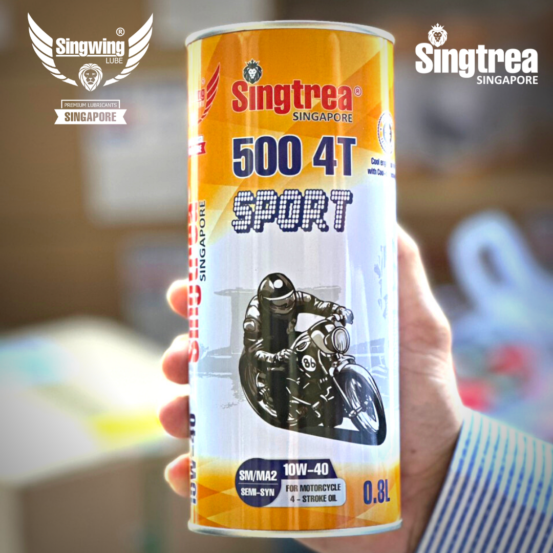 - Mô tả sản phẩm Nhớt xe máy Singtrea 500 Sport 4T 10W40 Lon 0.8L là sản phẩm dầu nhớt bán tổng hợp thiết kế dành riêng cho xe số với động cơ 4 thì, được trang bị Công nghệ Cool-Syn và phụ gia CLEAN-X độc quyền giúp làm mát máy đến 6%. Chất lượng luôn đáp ứng giữ độ nhớt khi vận hành liên tục trên cung đường dài.
