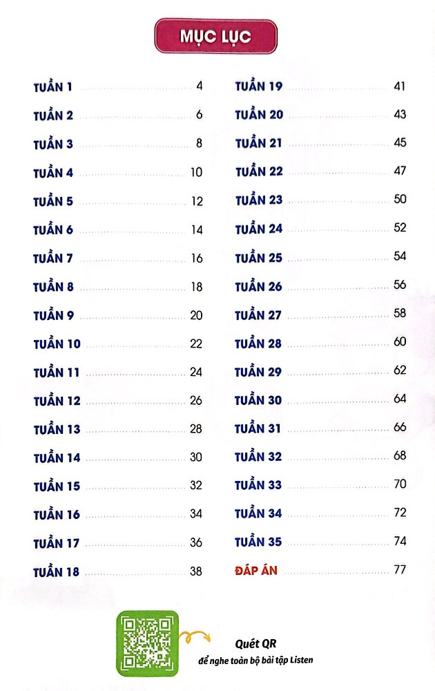 Bộ sách gồm các bài luyện tập chia theo tuần, ôn tập tổng quát kiến thức của 35 tuần học. Ngoài ra, cuốn sách cũng cung cấp các bài kiểm tra giữa kỳ và cuối kỳ để các con trau dồi thêm, tự tin chinh phục điểm cao trong các bài kiểm tra trên lớp.