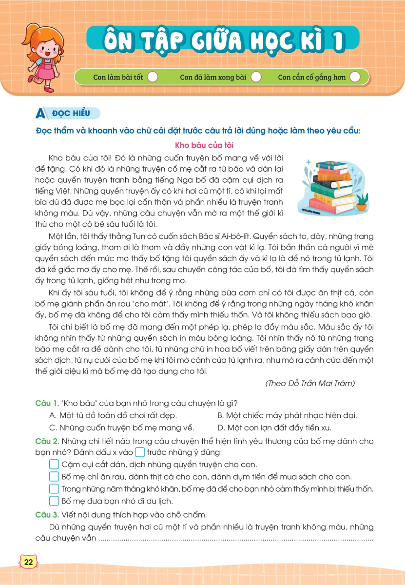 Đặc biệt, sau mỗi kì sẽ có bài ôn tập giữa kì và cuối kì giúp con có tài liệu ôn tập cho các kì kiểm tra.