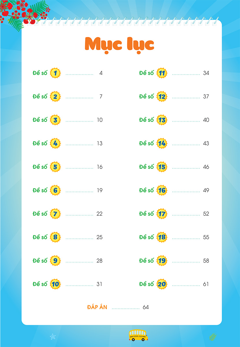 Cuốn sách bao gồm 20 bộ đề, mỗi bộ đề gồm 2 phần Phần đọc và Phần viết. Điều này giúp các em thực hành và nắm vững kiến thức thông qua các dạng bài tập khác nhau. Sự đa dạng này cũng giúp rèn luyện khả năng tư duy, suy luận và kích thích trí tưởng tượng của các em nhỏ. Phần viết của cuốn sách cũng giúp các con luyện chính tả, phân biệt được các chữ cái, từ, các vần dễ bị nhầm lẫn thường gặp.