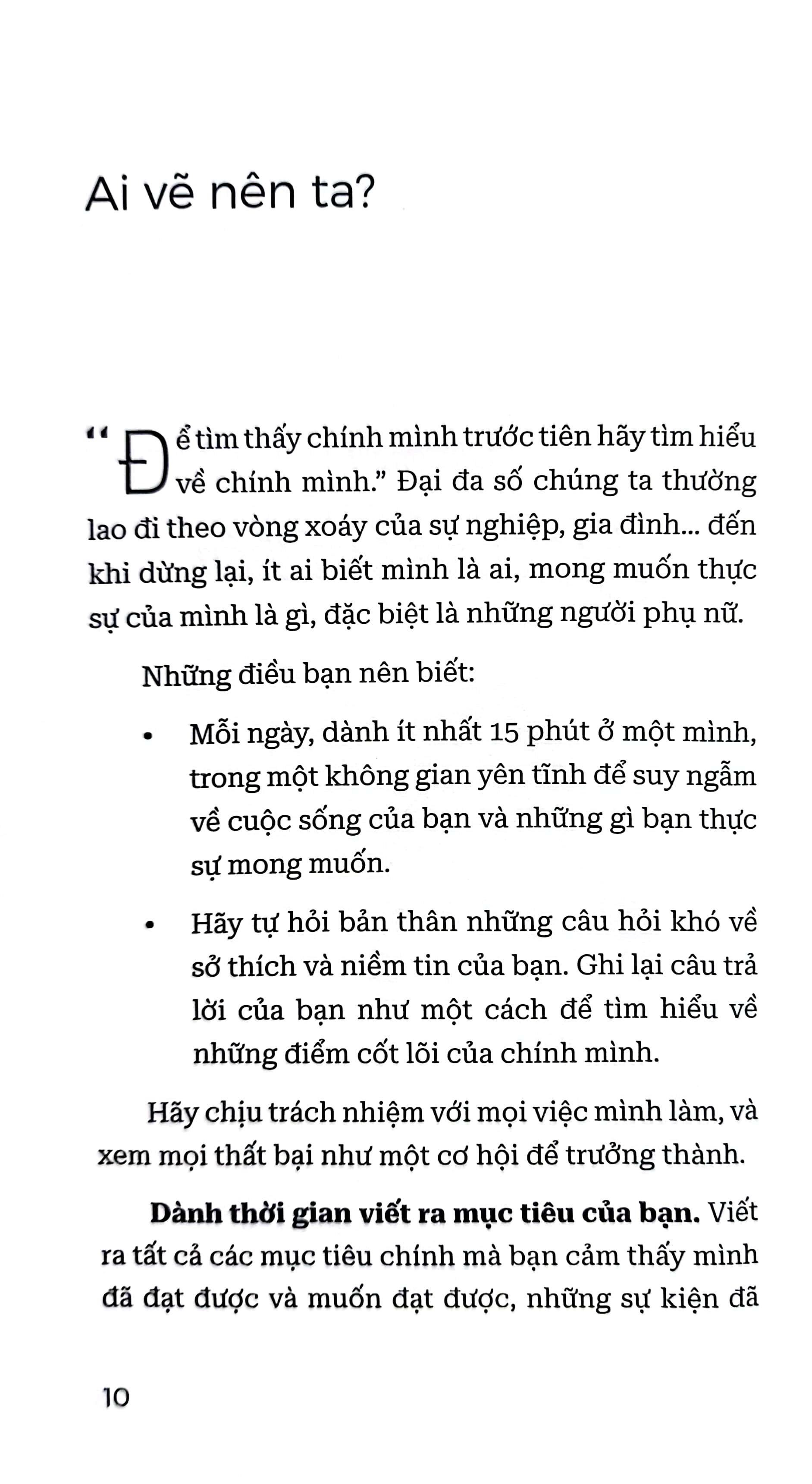 Với những bài viết được chắt lọc từ kinh nghiệm cá nhân, và tham khảo nhiều tài liệu hữu ích, tác giả đã đưa ra các luận điểm giúp cho các bạn nữ dễ dàng hơn trên hành trình tỏa sáng, tự nắm lấy khí chất của bản thân, và đạt được hào quang đời m.ình.