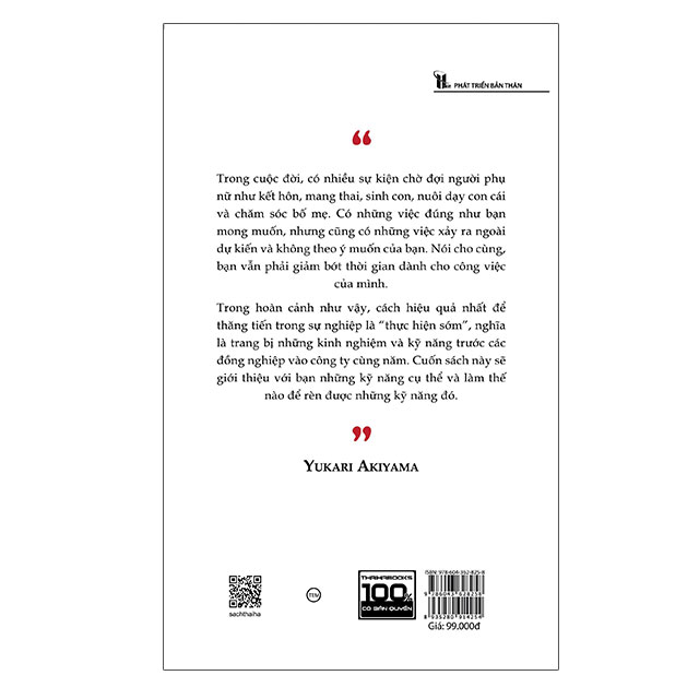 [ThaiHaBooks] Trong cuộc đời, có nhiều sự kiện chờ đợi người phụ nữ như kết hôn, mang thai, sinh con, nuôi dạy con cái và chăm sóc bố mẹ. Có những việc đúng như bạn mong muốn, nhưng cũng có những việc xảy ra ngoài dự kiến và không theo ý muốn của bạn. Nói cho cùng, bạn vẫn phải giảm bớt thời gian dành cho công việc của mình do nghỉ thai sản, nghỉ chăm con…
