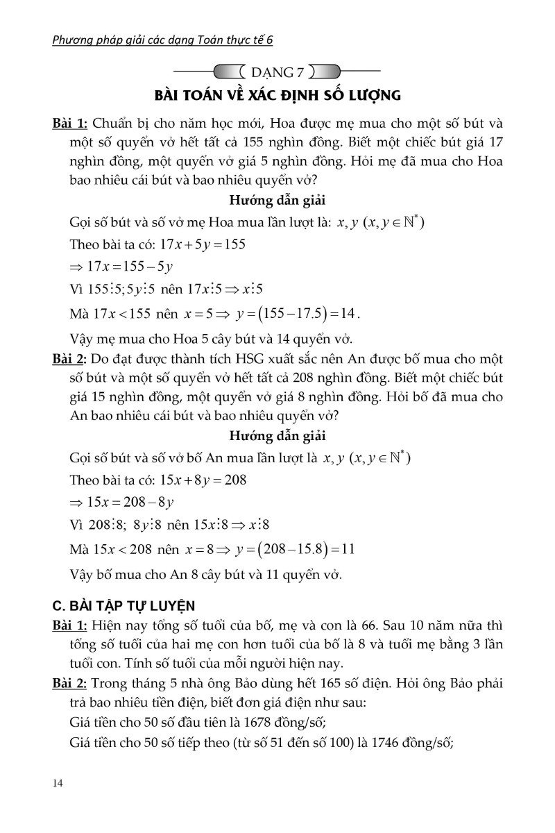 Toán thực tế rất đa dạng, phong phú, nội dung rất đa dạng, đòi hỏi học sinh phải biết tư duy khi biết phân tích vấn đề,…Vì vậy học sinh gặp rất nhiều khó khǎn khi tiếp cận dạng toán này để đáp ứng nhu cầu của học sinh lớp 6 trong việc rèn luyện nǎng lực tự học cũng như cung cấp nguồn tài liệu cho các Giáo viên, chúng tôi đã tổng hợp thành một số dạng quan trọng, cần thiết mà học sinh cần nắm vững để học giỏi môn toán cũng như biết ứng dụng tư duy toán học để giải quyết các vấn đề trong cuộc sống.