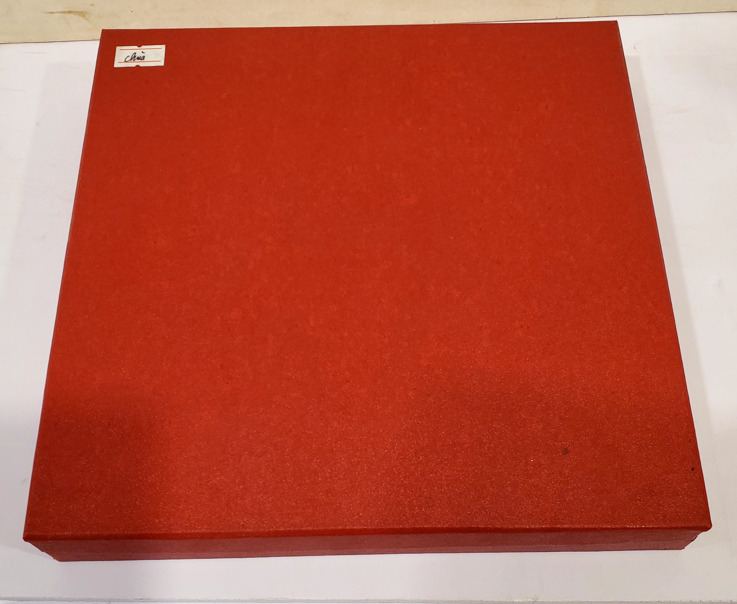 "Kích thước 20 cm x 20 cm x 9 cm, chất liệu giấy gân mỹ thuật màu đỏ, mặt trên in hoa văn Mục đồng thổi sáo, dán logo Trà Việt bằng giấy couche, bên