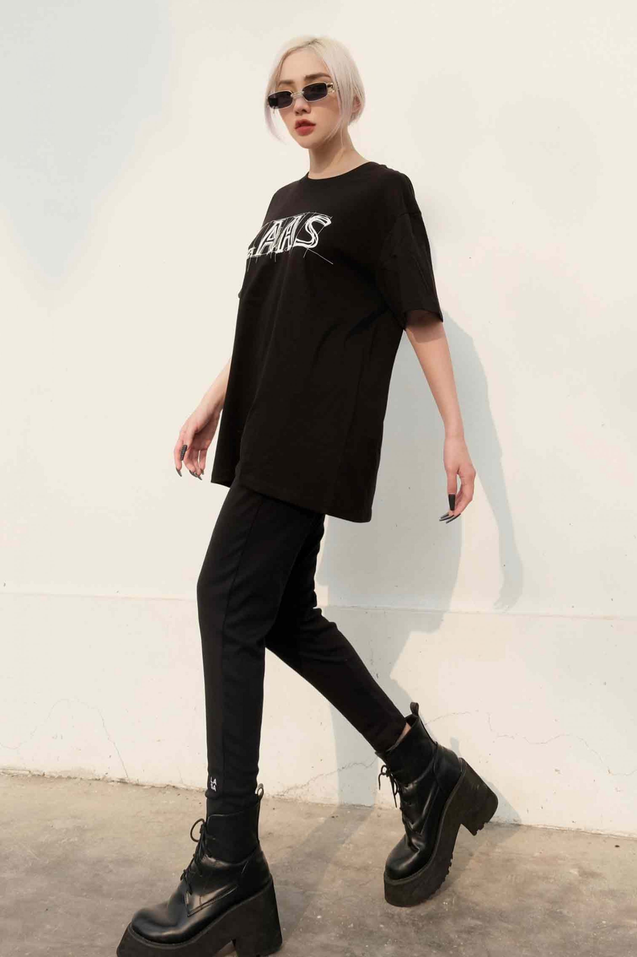 CHẤT THUN BO GÂN SỚ NHỎ DÀY MỀM THOÁNG MÁT QUẦN MÀU ĐEN FORM QUẦN ỐNG CÔN, TÚI XÉO 2 BÊN SƯỜN ĐIỂM NHẤN TAG LOGO DƯỚI ỐNG QUẦN VÒNG EO ( LƯNG CAO )