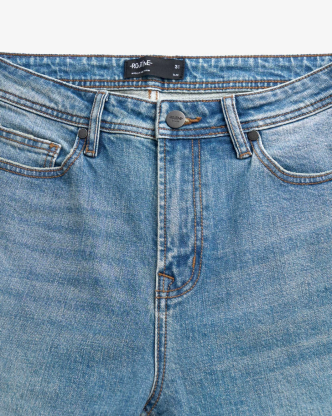 Quần Jean Nam ROUTINE Ống Ôm Xanh Trơn Cotton Spandex Form Slim - 10S24DPA004R1 | ROUTINE CÀ MAU ĐẶC ĐIỂM NỔI BẬT Nhóm sản phẩm Quần Jean Form dáng Slim Giới tính Nam Chất liệu