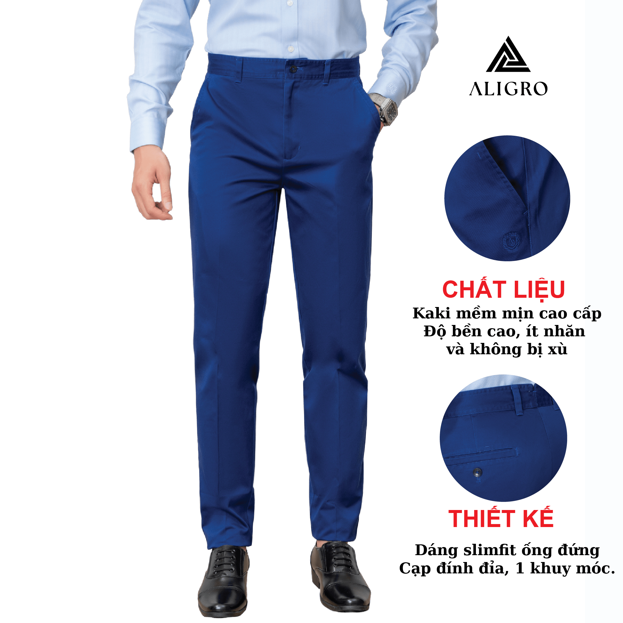 GIỚI THIỆU THƯƠNG HIỆU Mang trong mình tầm nhìn chiến lược trở thành thương hiệu “Thời trang nam được yêu thích nhất Việt Nam” nên Aligro luôn chú trọng nghiên cứu phát triển mẫu mã, phom dáng phù hợp với vóc dáng hình thể đàn ông Việt. Sản phẩm của chúng tôi mang tới hình ảnh trẻ trung, năng động, hiện đại mà không kém phần lịch sự, sang trọng - cam kết mang lại giá trị đích thực và một cuộc sống thịnh vượng hơn cho phái mạnh Việt. CHI TIẾT THIẾT KẾ QUẦN KAKI NAM ALIGRO