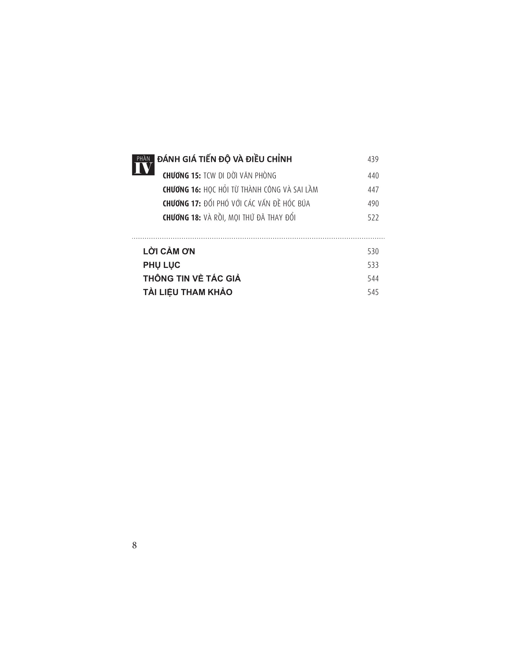 Cuốn sách đưa ra những phương pháp tiếp cận và công cụ để triển khai, tiếp nhận và quản lí sự thay đổi một cách hiệu quả. Cụ thể, tác giả chỉ ra rằng cần quản lí quy trình (mặt cứng) và con người (mặt mềm) của sự thay đổi và tìm ra điểm cân bằng tốt nhất giữa hai bên. Khi tích hợp cả hai, các tổ chức có thể quản lí sự thay đổi thành công và đạt được kết quả mong muốn. Đây chắc chắn là một cuốn cẩm nang hữu ích về điều hành, quản lí doanh nghiệp mà bất cứ doanh nhân nào cũng nên đọc một lần trong đời.