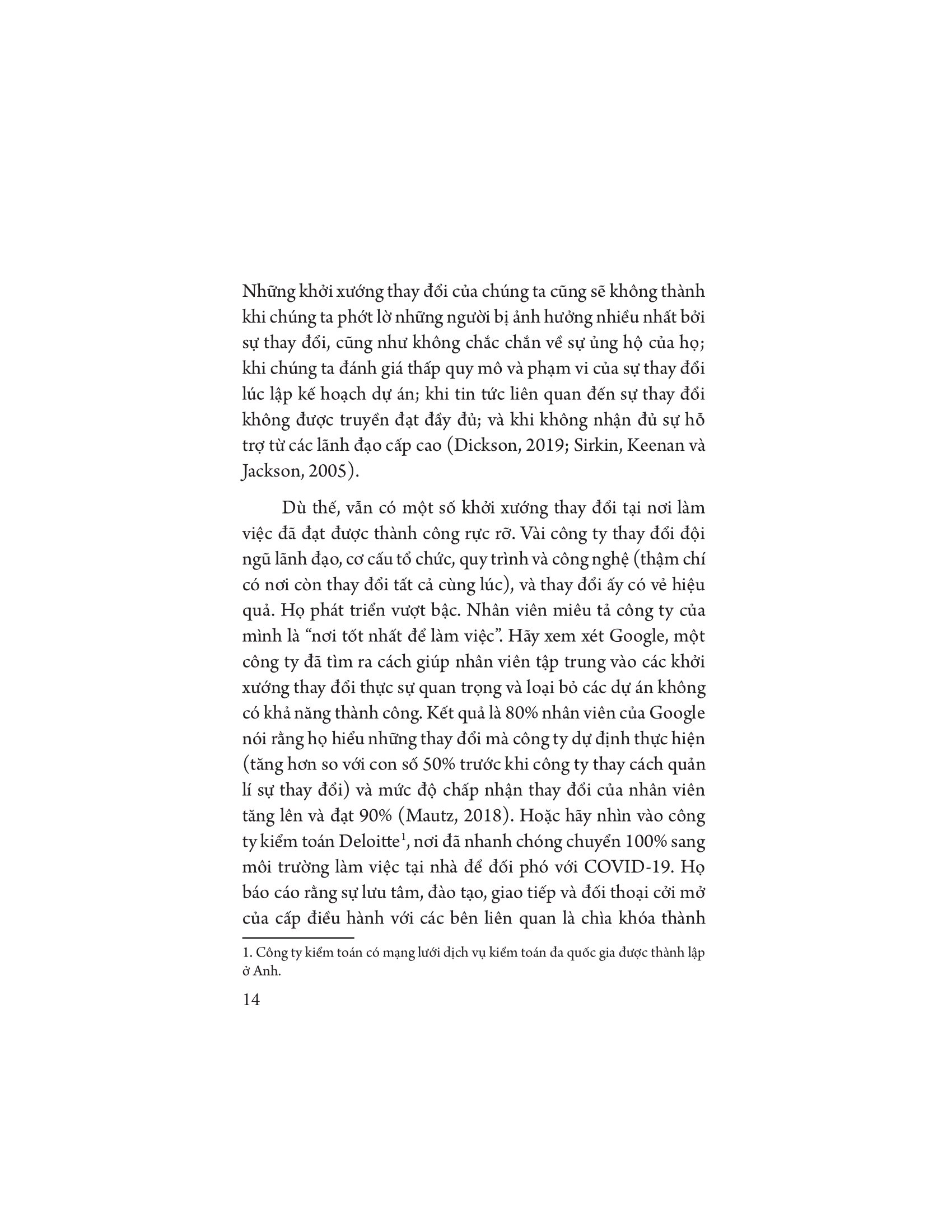 Trong công việc, và có khi cả trong đời sống cá nhân, chúng ta đều nghe người khác nói rằng chỉ có sự thay đổi là bất biến. Chúng ta đang sống trong một thế giới thiên biến vô cùng, được đặc trưng bởi sự biến động, không thể lường trước. Song rất nhiều lần, những nỗ lực thay đổi của chúng ta lại không đạt được mục tiêu mong muốn. Khách hàng rời đi, có khi còn nhiều hơn trước. Năng suất vẫn như cũ, thậm chí còn sụt giảm. Chúng ta cố gắng tìm hiểu chuyện gì đã xảy ra, mình đã bỏ qua điều gì, và chúng ta được bảo rằng kết quả không như mong muốn cũng là chuyện thường tình. Đôi khi những thay đổi ấy có hiệu quả, đôi khi lại không.