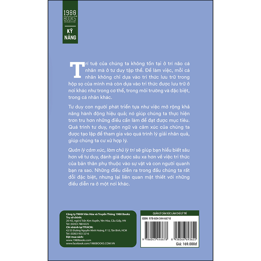 “Quản lý cảm xúc, làm chủ lý trí” sẽ giúp bạn hiểu biết sâu hơn về tư duy, đánh giá được sâu xa hơn về việc tri thức của bản thân phụ thuộc vào sự vật và con người quanh bạn ra sao. Những điều diễn ra trong đầu chúng ta rất đỗi đặc biệt, nhưng lại liên quan mật thiết với những điều diễn ra ở một nơi khác.