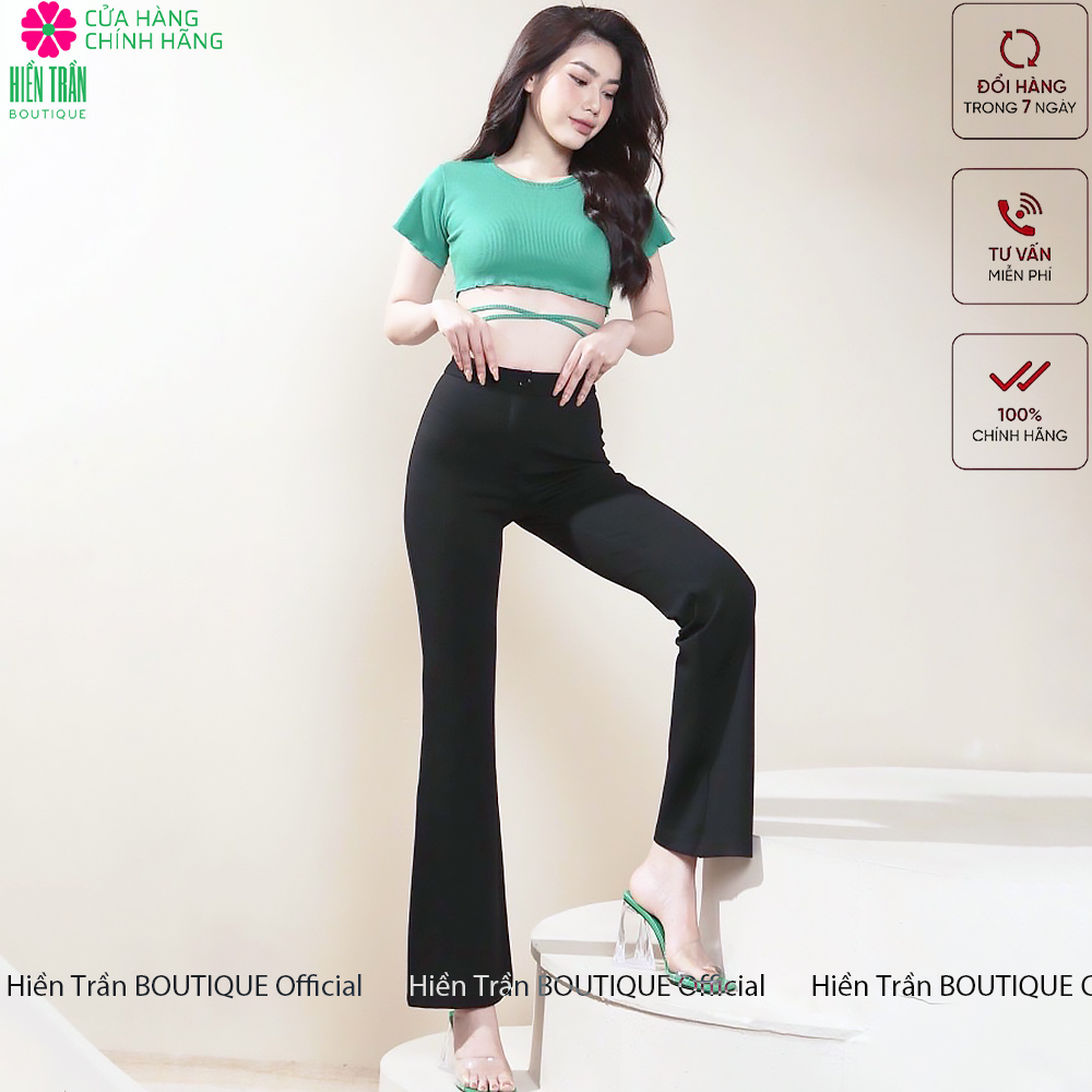 ✨Quần ống loe Hiền Trần BOUTIQUE lưng cạp cao 1 cúc suông rộng nữ dài culottes màu đen