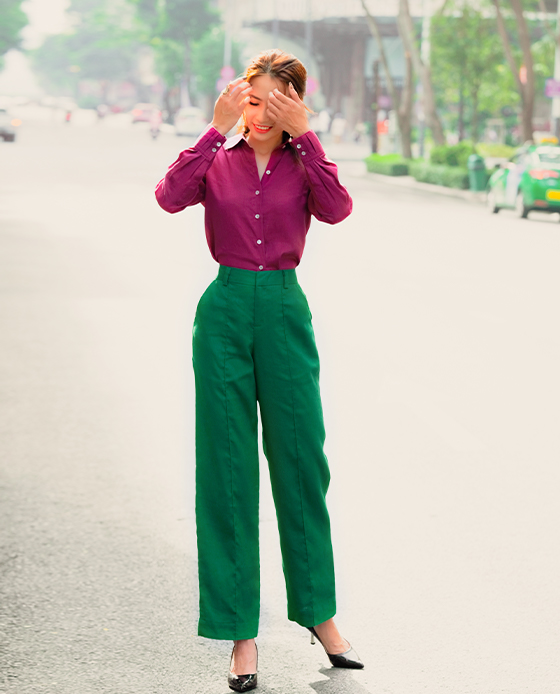 MÔ TẢ Một thoáng hoài cổ trong thiết kế quần ống suông Jazz. Thiết kế ống hơi loe giúp tôn lên vóc dáng của người mặc, lưng cao tạo vòng eo thon, chân trông thẳng và dài hơn, mang đến vẻ đẹp thanh lịch, sang trọng. Kiểu dáng quần ống suông loe bass nhẹ Lưng liền, cao ngay vòng eo 2 túi 2 bên, miệng túi giả phía sau Cài phía sau bằng dây khoá kéo CHẤT LIỆU Polyester Nghệ nhân cắt may: Bảo Yến, Bích Hoà Cắt may thủ công tinh tế tại Hity Atelier, Nha Trang, Việt Nam Người mẫu Phan Duyên cao 165cm, vòng ngực 88cm vòng eo 65cm vòng mông 95cm - người mẫu