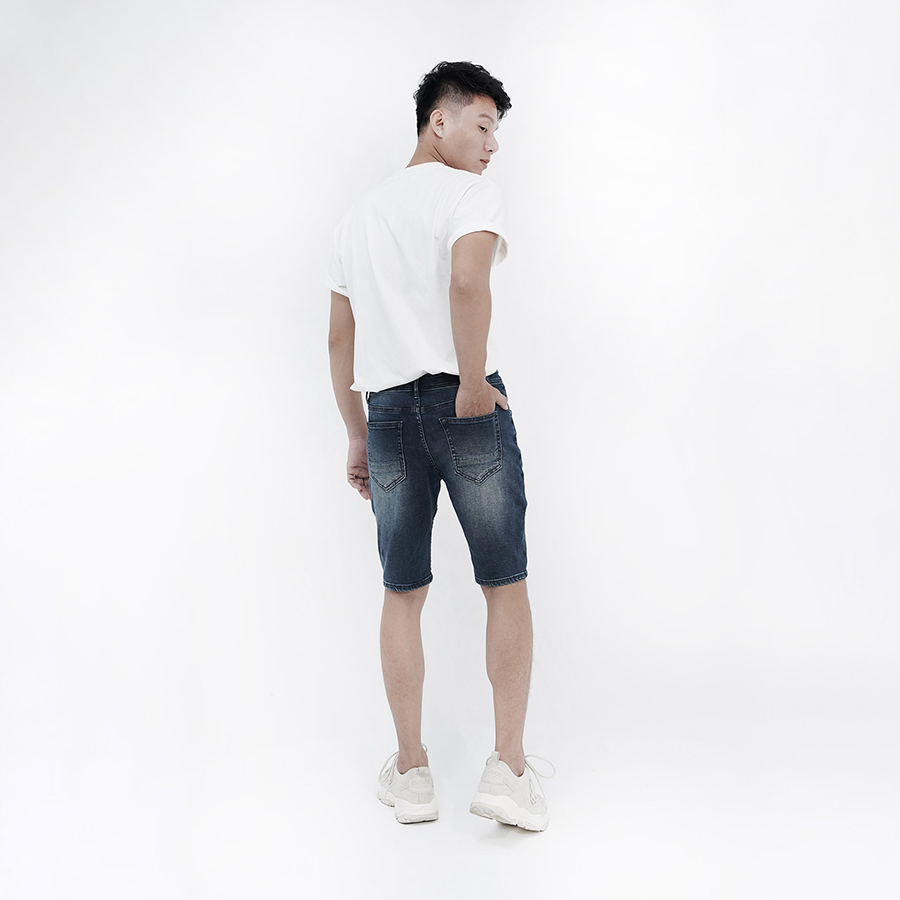 Quần short jeans nam bụi form slimfit thun mài sơn màu xanh đậm S36 | Hunter X-Rays