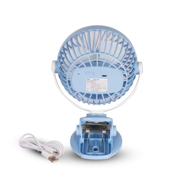Mô tả sản phẩm Thông số kĩ thuật quạt kẹp bàn CRF0705: - Công suất 5W - Pin lithium-ion 3.7V 1800mAh - Điện áp 5V DC - Kích thước lồng quạt: 12.7 cm - 3
