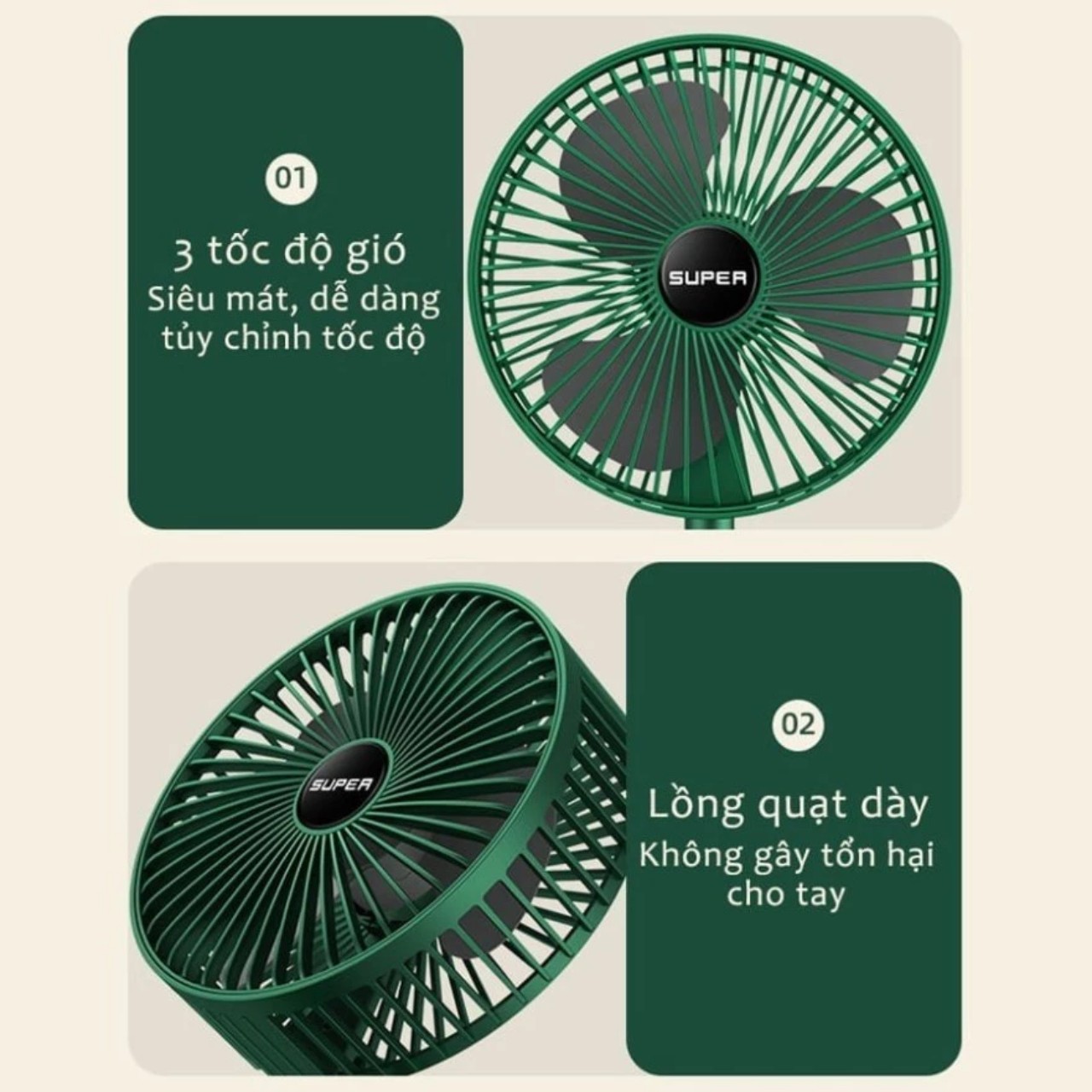 Kết luận Quạt tích điện để bàn mini gấp gọn là sự lựa chọn hoàn hảo cho những ai cần một chiếc quạt nhỏ gọn, tiện lợi nhưng vẫn đảm bảo khả năng làm mát hiệu quả. Với thiết kế thông minh, tính năng linh hoạt và khả năng sạc qua cổng USB, đây sẽ là người bạn đồng hành không thể thiếu trong những ngày hè nóng bức.