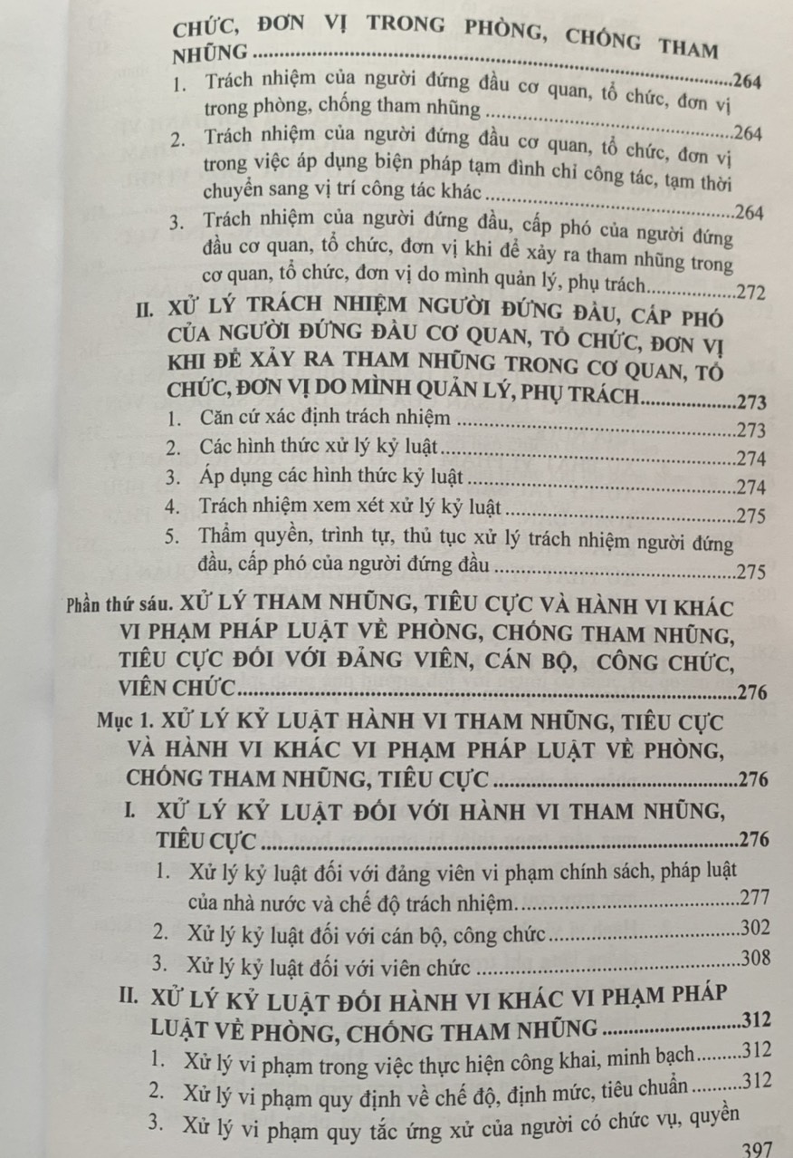Phần thứ sáu. Xử lý tham nhũng, tiêu cực và hành vi khác vi phạm pháp luật về phòng, chống tham nhũng, tiêu cực đối với đảng viên, cán bộ, công chức, viên chức