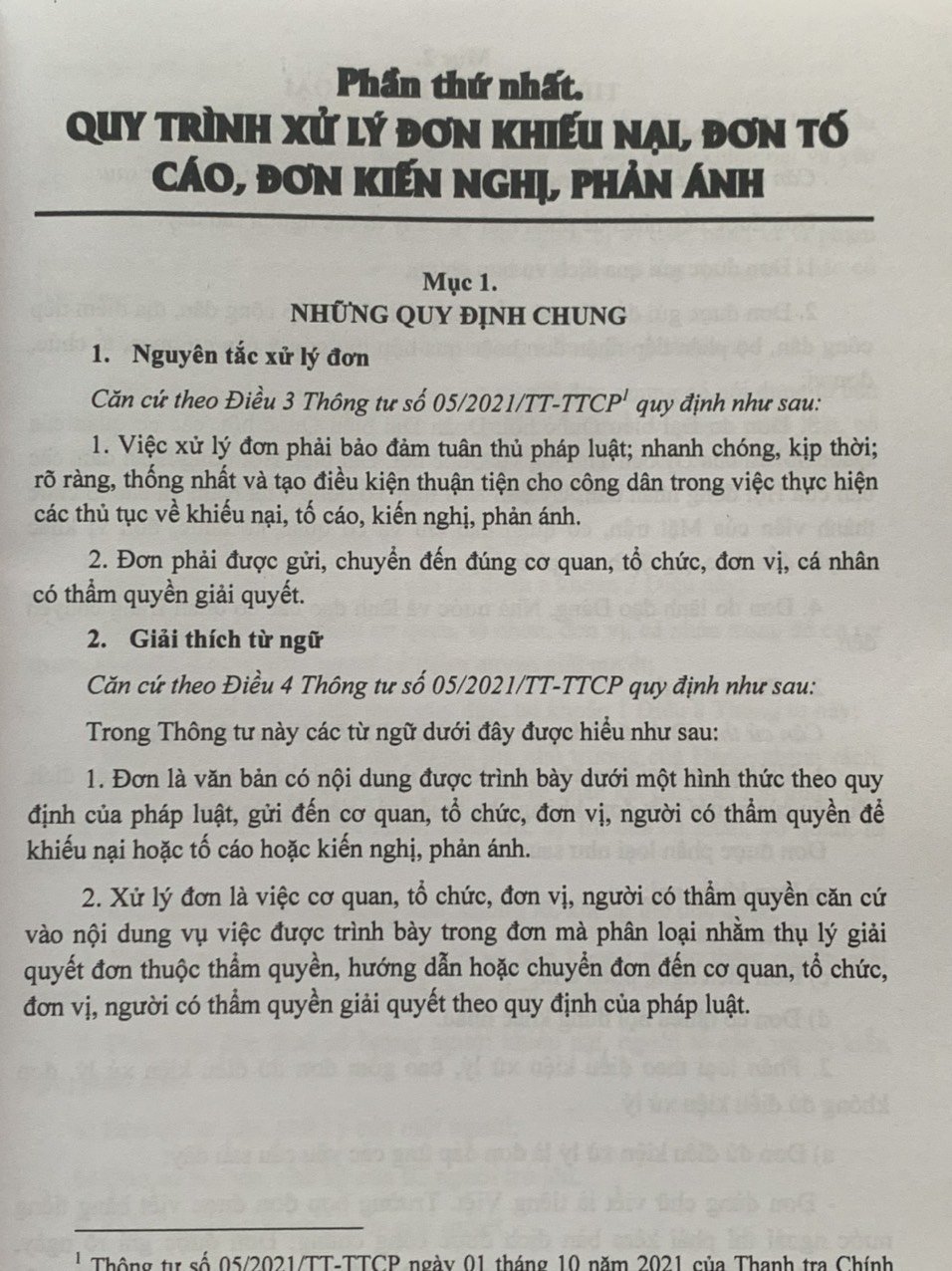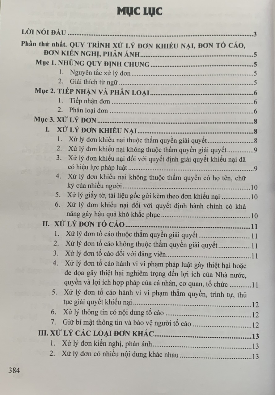 Phần thứ nhất. Quy trình xử lý đơn khiếu nại, đơn tố cáo, đơn kiến nghị, phản ánh