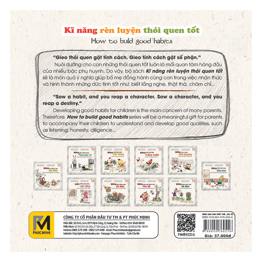 Nuôi dưỡng cho con những thói quen tốt luôn là mối quan tâm hàng đầu của cha mẹ. Do vậy, bộ sách Kĩ năng song ngữ Rèn luyện thói quen tốt sẽ là món quà ý nghĩa giúp bố mẹ đồng hành cùng con trong việc nhận thức và hình thành những đức tính tốt.