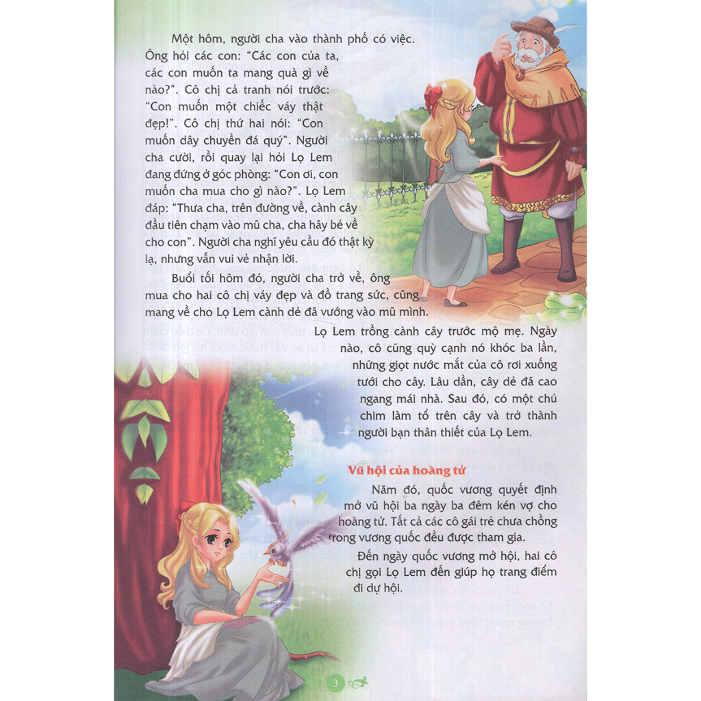 Sách: 101 Câu Chuyện Các Nàng Công Chúa 101 câu chuyện về các nàng công chúa là những chuyện đặc sắc nhất, cảm động nhất, li kì nhất, mạo hiểm nhất thế giới, giúp các bé gái được du hành trong thế giới cổ tích thần kì, trong những bức tranh lung linh màu sắc, cảm nhận được sự thuần khiết, dũng cảm, lương thiện, kiên cường, lạc quan, tự tin… Vì những điều này là ước mơ của các bé gái, cũng là kì vọng của mỗi bậc cha mẹ. Chỉ có ước mơ mới làm cho kí ức tuổi thơ trở nên phong phú, mới làm cho hành trình trưởng thành của chúng ta trở nên xán lạn. Dũng cảm - chính là sự kiên trì, nhẫn nại khi phải đương đầu với những khó khăn của công chúa Marin, từ đó giúp các bạn nhỏ học cách trân trọng, yêu thương cuộc sống. Kiên cường - chính là công chúa Elisa, đã mạo hiểm cả tính mạng của mình để dệt áo tầm gai, giúp các em nhỏ hiểu được tình thân quan trọng như thế nào. Đáng yêu - chính là cuộc hành trình kì diệu mang theo chiếc nhẫn ma thuật của công chúa Susanna, giúp các em học cách chia sẻ. Lạc quan - là tính cách của bảy công chúa khi phải đối diện với những cám dỗ trong cuộc sống, giúp các em có cái nhìn cuộc sống tích cực và yêu đời. Tuyệt vời - là câu chuyện về niềm vui khi công chúa Bạch Tuyết sống cùng với bảy chú lùn, giúp các em cảm nhận được tình bạn đáng quý. Lương thiện - là câu chuyện về nàng tiên cá hóa thành bọt biển, giúp các em cảm nhận được thế nào là tình cảm chân thành. Thần kì - là câu chuyện về sự hồi sinh của nàng công chúa tỉnh dậy sau một giấc ngủ dài trăm năm, giúp các em biết cho và nhận. Thông minh - là câu chuyện về nàng công chúa sống trong mê cung và bí mật về con dê vàng đáng yêu, giúp các em biết nắm bắt cơ hội trong cuộc sống. Những nàng công chúa với tính cách khác nhau, đã in sâu dấu ấn trong lòng các em nhỏ, và được các em nhỏ trên toàn thế giới yêu thích Những câu chuyện ấy như người bạn đồng hành của các em, giúp các em phát hiện cái đẹp, nhận biết cái đẹp, cảm nhận cái đẹp và vận dụng cá đẹp, từ đó trở thành một em nhỏ đẹp từ cả ngoại hình đến tính cách. Trân trọng giới thiệu với các em cuốn sách này.