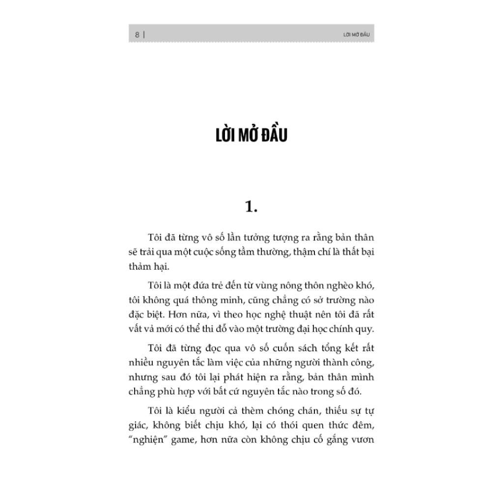 Trong cuốn sách này, Lữ Bạch chia sẻ cách nhanh chóng thực hiện các thay đổi và phát triển hiệu quả trong 21 ngày. Từ chối những nỗ lực và tưởng tượng sai lầm, chỉ cần làm và thực hiện nó. Nó được viết cho những người bình thường như anh ấy, những người không có nền tảng trường lớp danh giá nhưng muốn thay đổi vận mệnh của mình thông qua sự chăm chỉ.