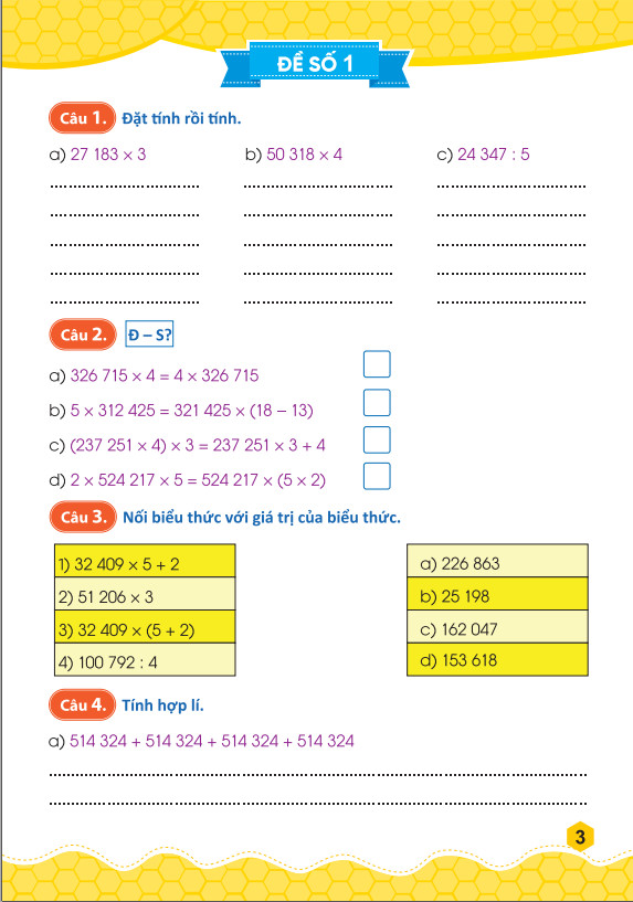 Sau mỗi tuần học hoặc đến kì ôn tập giữa kì và cuối kì, các thầy cô giáo có thể giao bài tập cho học sinh bằng các đề toán trong bộ sách này. Sau khi hoàn thành hết các bài tập trong mỗi đề, các em sẽ củng cố nằm vững kiến thức và học tốt môn Toán.
