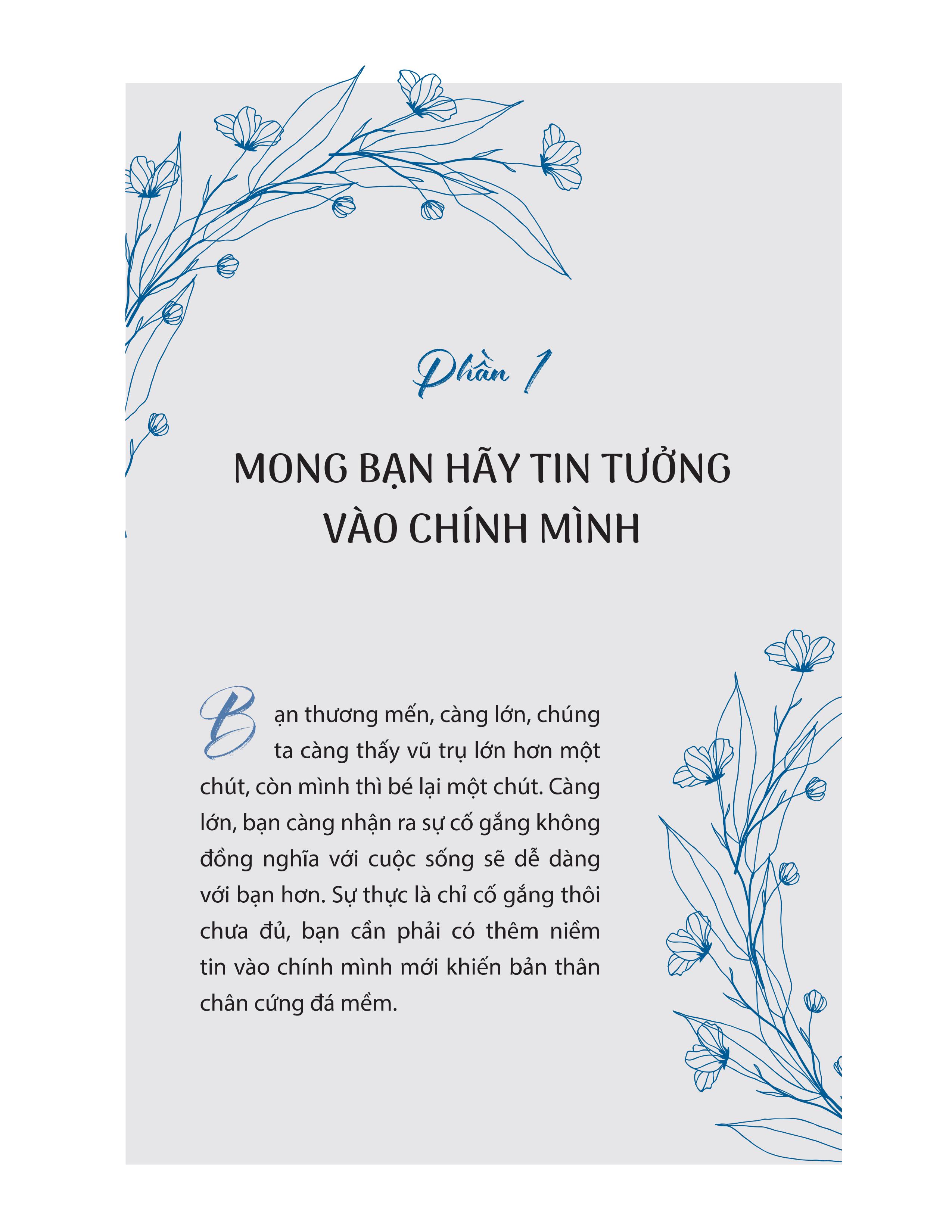 Trưởng thành là quá trình chuyển tiếng khóc sang chế độ im lặng, trái tim bạn sẽ ngày càng vững vàng, kiên định và bình thản hơn. Lúc còn trẻ, bạn sẽ phóng đại từng chút sự bất mãn trong lòng. Nhưng khi lớn lên, bạn mới vỡ lẽ rằng càng đau lại càng bình tĩnh, càng khổ lại càng im lặng. Trong những đêm nức nở khôn nguôi, một hạt giống được thấm đẫm nước mắt của bạn, nó đã nảy mầm trong trái tim bạn, bén rễ và từ từ lớn lên thành thân cây cao lớn. Mỗi người bước vào đường đời, đều một mình gánh lấy số phận và nỗi đau, thậm chí không có ai sánh vai. Đám đông nhộn nhịp không phải bạn đồng hành, và hàng ngàn khuôn mặt chỉ như triển lãm tranh. Ngay cả người nằm trên cùng một chiếc giường cũng mơ những giấc mơ khác nhau. Không ai hiểu được trái tim vụn vỡ của bạn, không ai biết những đêm trằn trọc của bạn, và càng không ai hiểu được tình yêu lo được lo mất của bạn. Nỗi đau đớn chua xót, tuyệt vọng và vùng vẫy giống như những viên đá ném xuống biển, chẳng thấm tháp gì. Tôi thích bản thân dũng cảm vượt qua giông bão, và tôi càng thích bản thân kiên trì trong đêm đen hơn. Số phận không thể bắt tôi phải quỳ xuống cầu xin sự thương xót trừ khi tôi chủ động quỳ xuống. Không có mùa đông nào là không qua đi, cũng không có mùa xuân nào mà không đến. Tôi chỉ mong rằng những kì vọng và ước mơ của chúng ta có thể sinh sôi trong thế giới đan xen những ấm áp và lạnh lẽo này. Dẫu thế giới có khó khăn thế nào, chúng ta vẫn phải sống thật tốt.