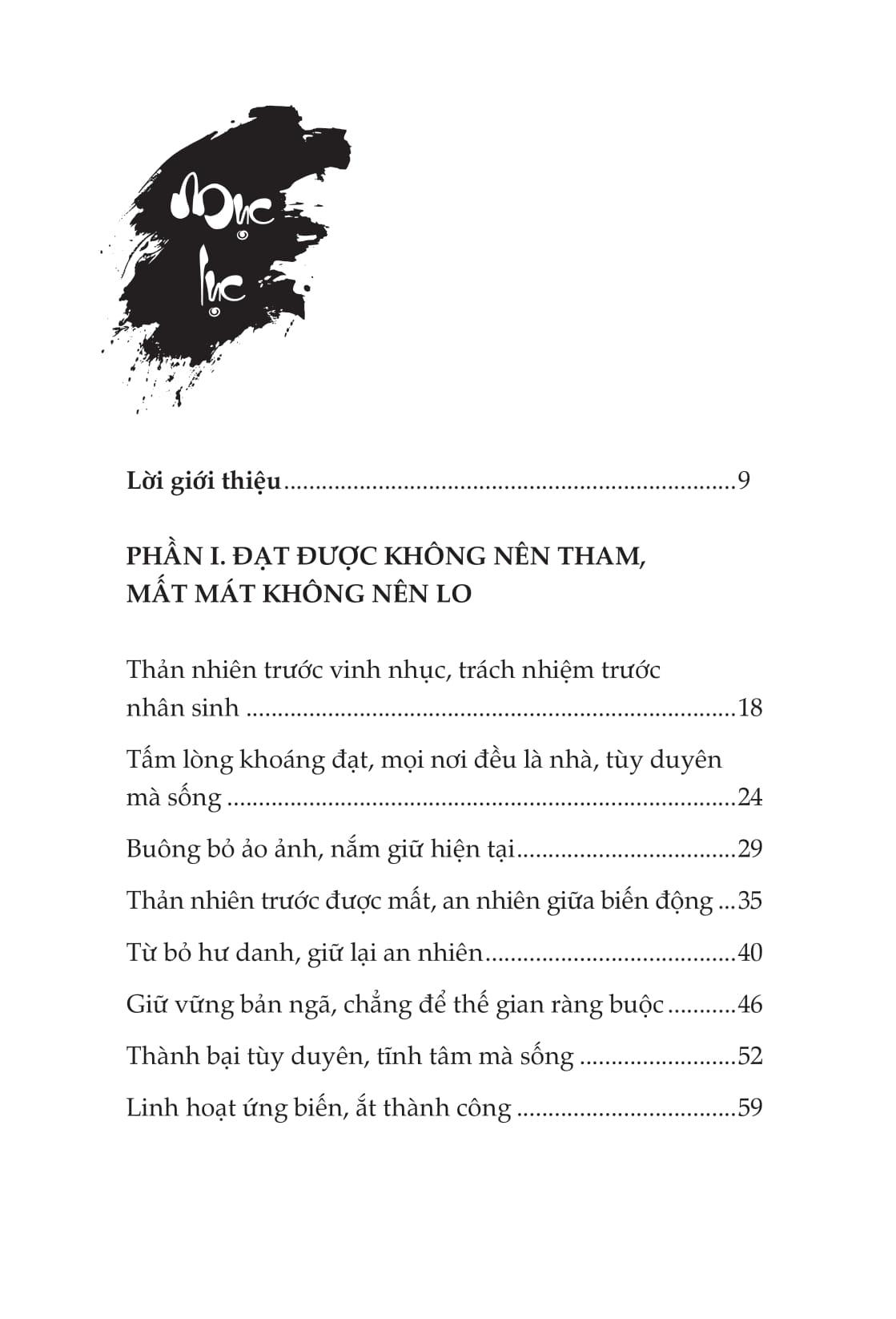 - Làm chủ bản thân, thản nhiên trước được mất: Sách giúp người đọc nhận ra rằng danh lợi, quyền lực chỉ là phù du, và sự thanh thản trong tâm hồn mới là điều đáng quý.