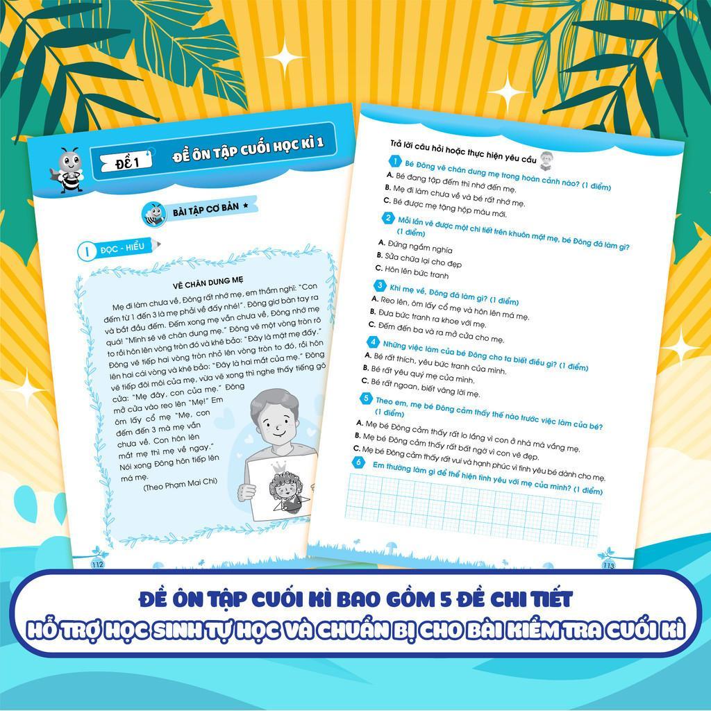 Cuốn sách cũng cung cấp 5 đề ôn tập cuối kì với thang điểm cụ thể, để các em tự ôn luyện và đánh giá đúng mức độ nắm kiến thức, chuẩn bị tốt kiến thức và tâm lý cho bài kiểm tra cuối kì.