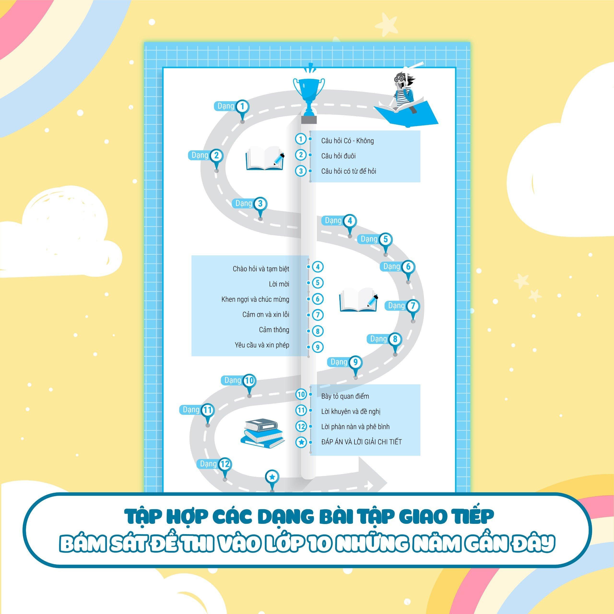 Cuốn sách bao gồm 3 dạng bài tập Giao tiếp Tiếng Anh trong kì thi vào 10 và 10 Chuyên môn Tiếng Anh