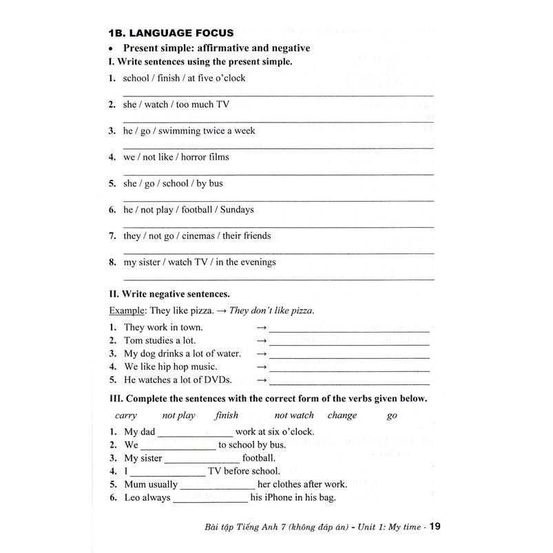 Các bài tập trong Bài Tập Tiếng Anh 7 - Không Đáp Án (Bám Sát SGK Chân Trời) đa dạng, phong phú, bám sát từ vựng, ngữ pháp và chủ đề trong sách giáo khoa Tiếng Anh – chương trình mới.