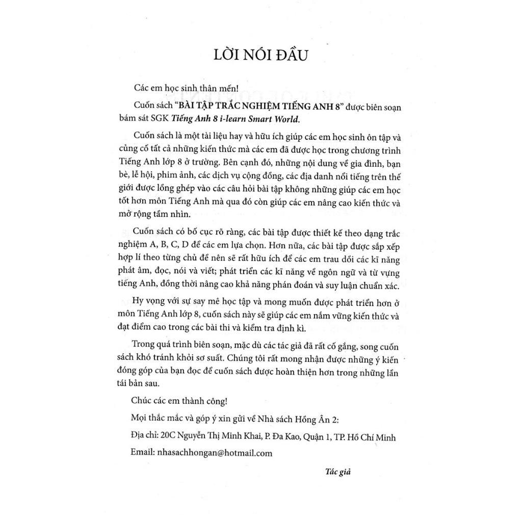 Cuốn sách Bài Tập Trắc Nghiệm Tiếng Anh 8 - Có Đáp Án (Bám Sát SGK Cánh Diều) được biên soạn dựa trên sách Tiếng Anh 8 i-learn Smart World thuộc bộ sách giáo khoa Cánh Diều.