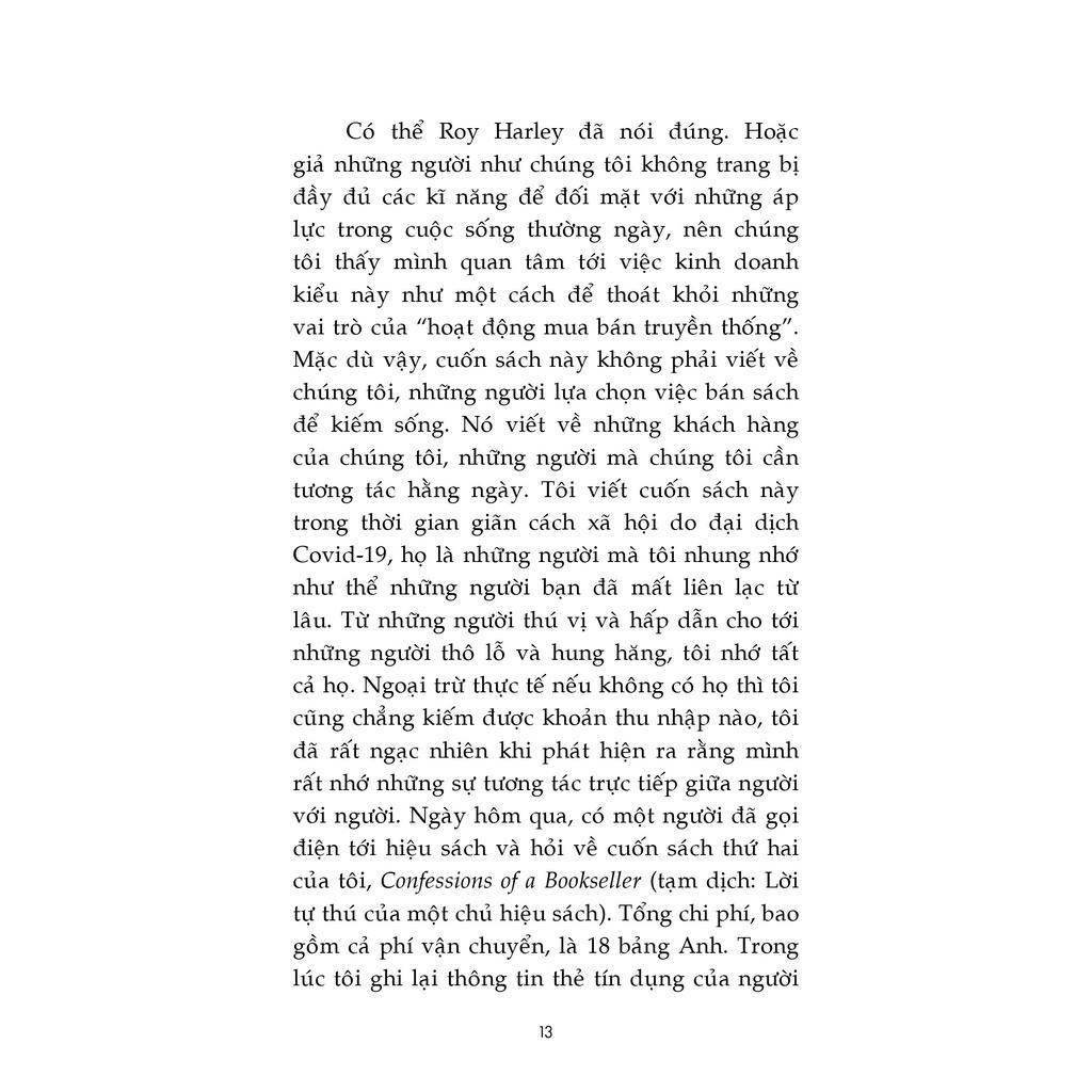 Với con mắt quan sát độc đáo và giọng văn hài hước, Shaun Bythell khiến tác phẩm trở thành cuốn sách hoàn hảo cho bất kì ai yêu sách và yêu những hiệu sách. Cuốn tự truyện thú vị này được Shaun Bythell viết trong những ngày giãn cách của đại dịch Covid-19, và nó như một lời cảm ơn chân thành của tác giả đối với các khách hàng của anh, những người mà sẽ giúp cho những cửa hàng sách thú vị có thể tồn tại vượt qua cuộc khủng hoảng.