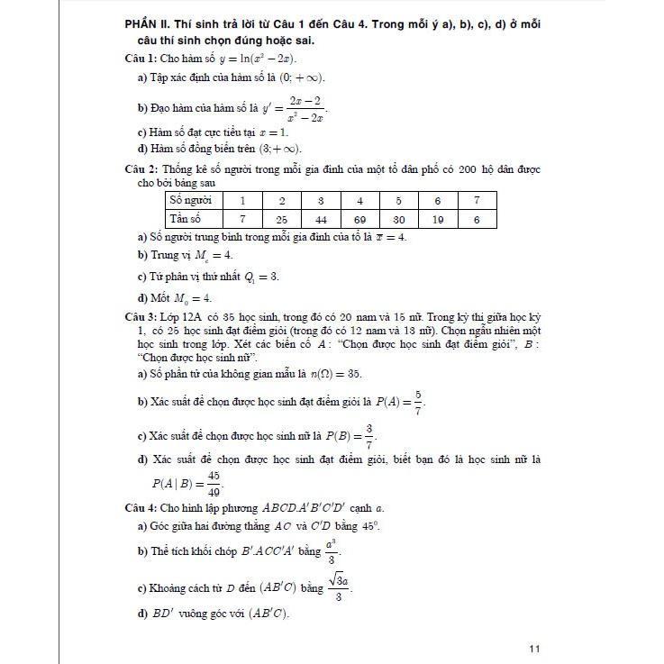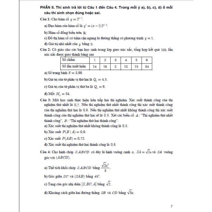 Phần này đưa ra đáp án toàn bộ câu hỏi và trình bày lời giải chi tiết các câu hỏi ở Phần II và Phần III của từng đề thi theo thứ tự từ Đề số 1 đến Đề số 20.