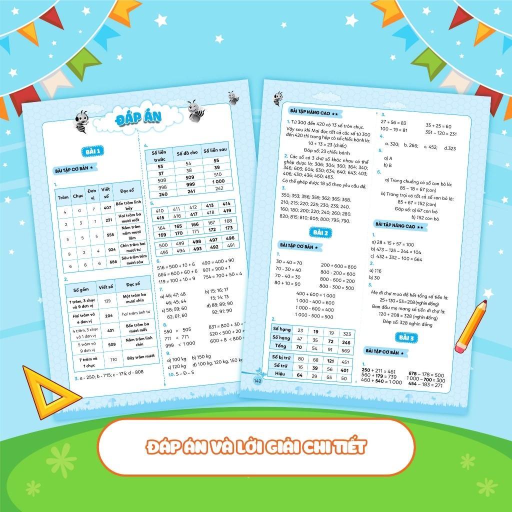 - Đáp án chi tiết, rõ ràng: Phần đáp án chi tiết ở cuối sách giúp phụ huynh và các con có thể tự đối chiếu và đánh giá sau khi hoàn thành bài tập, từ đó có phương pháp ôn luyện phù hợp cho con. Mong rằng cuốn sách Bổ trợ Toán bài tập cơ bản và nâng cao lớp 3 tập 1 sẽ là người bạn đồng hành thân thiết, giúp các em tự tin nắm vững kiến thức của lớp 3