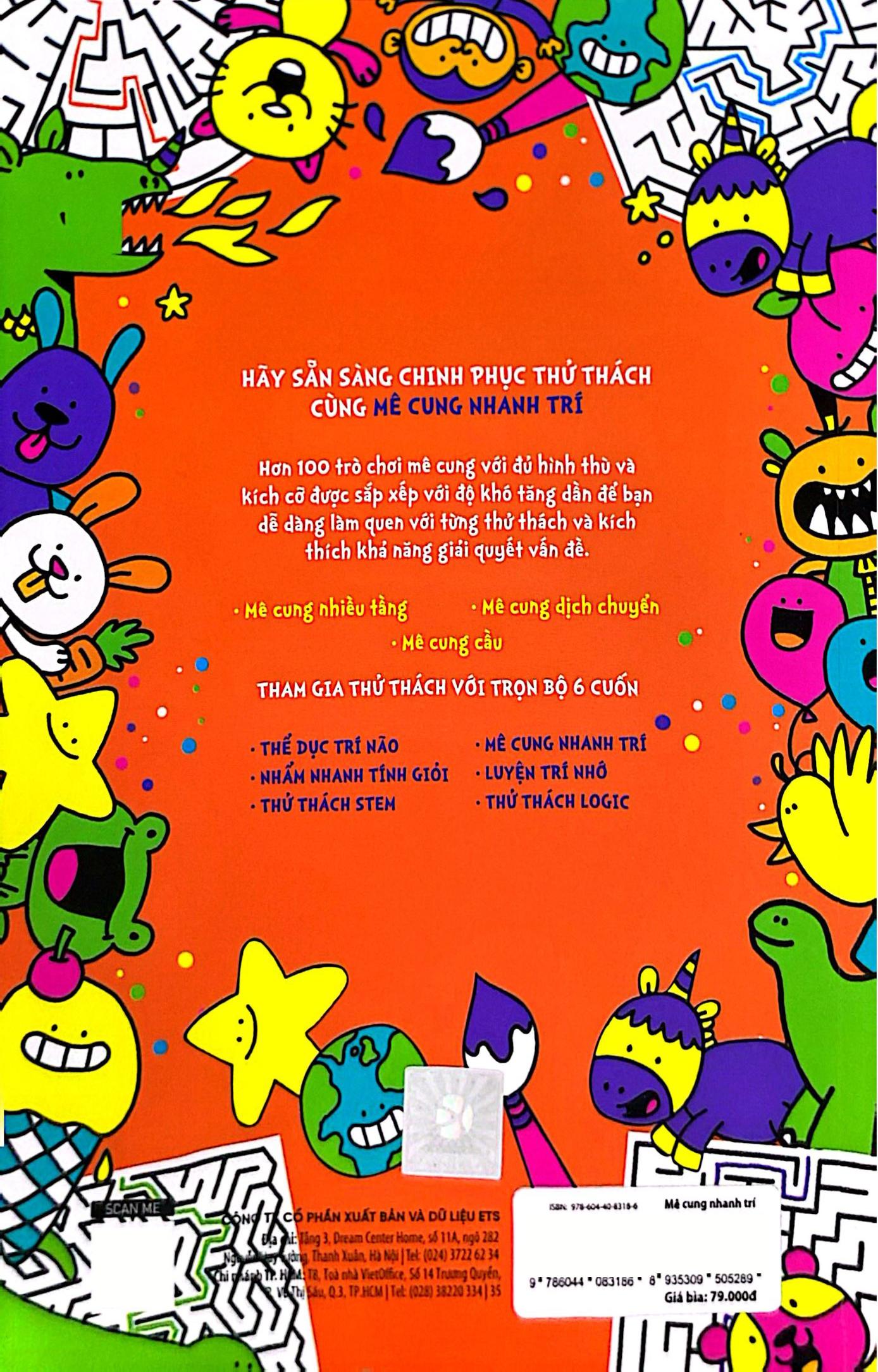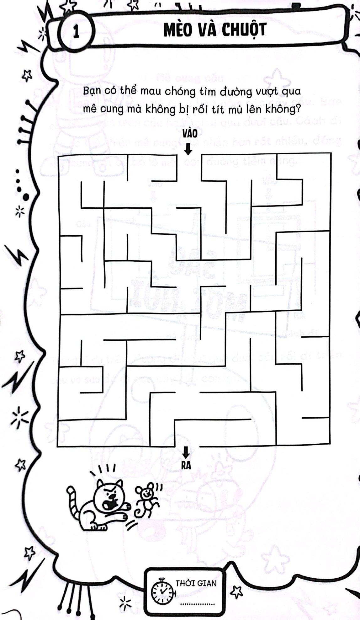 Từ mê cung hình tròn, hình tam giác đến mê cung nhiều tầng, mê cung có cầu, mê cung dịch chuyển… cuốn sách này đủ trò để khiến bạn vừa “xoắn não” vừa cười khúc khích. Bạn có thể dùng bút chì, đua thời gian với chính m.ình và thử thách ai thông minh hơn – bạn hay… cái mê cung!