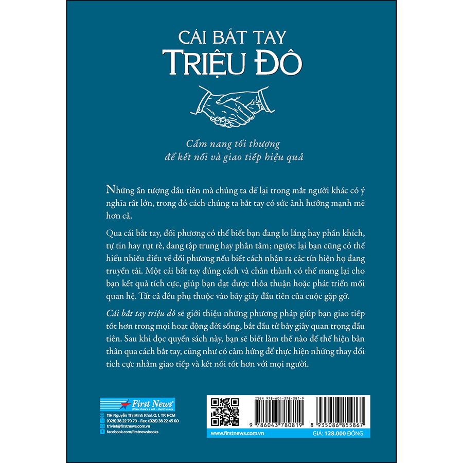 - Thu lợi triệu đô từ khả năng giao tiếp thần sầu - Bảy giây - bạn có thể đạt được những gì trong từng này thời gian? Thật ra chỉ trong bảy giây ngắn ngủi, bạn đã có thể ghi ấn tượng khó phai với người bạn gặp gỡ lần đầu tiên. Nếu bạn đến gặp ai đó với hy vọng được tuyển dụng, ký kết hợp đồng làm ăn, hoặc thậm chí là tìm bạn đời, ấn tượng ban đầu là hết sức quan trọng và bạn muốn để lại dấu ấn thật tốt đẹp. Vậy ấn tượng ban đầu đến từ đâu? Tác giả Catherine Molly khẳng định: “Trước cả khi bạn mở lời, cách bạn đi đứng, bắt tay, giao tiếp bằng mắt và kết nối với đối phương đã nói lên rất nhiều điều về bạn”. Và vì thế, chuyên gia giao tiếp này đã chia sẻ những bài học đắt giá về ngôn ngữ cơ thể và phong cách hành vi trong cuốn sách “Cái bắt tay triệu đô” (tựa gốc “The Million Dollar Handshake”), nhằm giúp bạn tạo được ấn tượng tốt đẹp trong mắt người khác chỉ trong vòng bảy giây. Bản thân tác giả chính là một bằng chứng sống. Trong năm đầu tiên điều hành công ty riêng, Catherine Molloy đã chốt được số hợp đồng có giá trị lên tới một triệu đô-la, tất cả đều bắt nguồn từ những cuộc gặp gỡ trực tiếp đã tạo được ấn tượng tốt với khách hàng tiềm năng, và mỗi cuộc gặp đều bắt đầu bằng cái bắt tay tự tin, chủ động cùng phong cách giao tiếp phù hợp. Bắt tay như thế nào là đúng cách? Trong chương 1, Catherine Molloy giải thích về cách bắt tay thể hiện sự tự tin của bản thân và lòng tôn trọng dành cho đối phương. Trong chương 2, bà giới thiệu đến độc giả mọi khía cạnh có liên quan đến ngôn ngữ cơ thể như ánh mắt, nét mặt, giọng nói, cử chỉ… cũng như sức ảnh hưởng của những yếu tố này đối với cơ hội thành công. Chương 3 bàn về “phong cách hành vi”, một phương tiện giao tiếp hữu hiệu bên cạnh lời nói và các tín hiệu phi ngôn từ. Bạn là người tự tin hay ít nói và suy nghĩ thận trọng? Bạn có muốn trở thành tâm điểm của sự chú ý không? Bạn thích tán gẫu hay muốn đi thẳng vào vấn đề? Theo Catherine, khi biết về phong cách hành vi của bản thân và của người khác, bạn sẽ có thể điều chỉnh cách giao tiếp của mình, khiến đối phương cảm thấy thoải mái và từ đó tăng hiệu quả kết nối. Chương 4 tập trung vào “tư duy triệu đô”, lối tư duy giúp chúng ta có cái nhìn và niềm tin tích cực hơn về bản thân mình, người khác cũng như các tình huống ta gặp phải. Trong chương 5, tác giả chia sẻ kinh nghiệm làm việc trong môi trường quốc tế, giúp bạn chuẩn bị sẵn sàng cho các cuộc gặp gỡ với những người đến từ nhiều nền văn hóa khác nhau. Ở chương 6, bạn đọc sẽ khám phá “khuôn khổ kết nối có ý thức”, hay nói cách khác là trạng thái tỉnh thức, luôn toàn tâm toàn ý khi giao tiếp và kết nối. Không chỉ có cách dẫn dắt súc tích, hấp dẫn và chân thật, Catherine Molloy còn chia sẻ trong “Cái bắt tay triệu đô” những nghiên cứu tâm lý kinh điển, nhiều câu chuyện người thật việc thật, cùng những phần trắc nghiệm thú vị để bạn khám phá phong cách hành vi của mình. Quyển sách này đặc biệt hữu ích cho các doanh nhân, các bạn sinh viên mới ra trường đang chuẩn bị phỏng vấn xin việc, nhân viên bán hàng và bất cứ ai thường xuyên giao tiếp trong công việc lẫn cuộc sống hằng ngày. Ấn phẩm sẽ giúp bạn tạo được ấn tượng tốt đẹp trong bảy giây tương tác đầu tiên và cả sau đó, nhằm tạo được sự kết nối mạnh mẽ và xây dựng các mối quan hệ sâu sắc cả trong công việc lẫn cuộc sống. “Đây là quyển sách về việc bắt tay một triệu lần và thành công đàm phán được cả một triệu thoả thuận”, Catherine Molloy hứa hẹn. Về tác giả Catherine Molloy là chuyên gia giao tiếp kiêm diễn giả quốc tế về thuật lãnh đạo và kỹ năng bán hàng. Với 25 năm kinh nghiệm trong mảng kinh doanh, đào tạo và điều phối, Catherine đã đào sâu nghiên cứu về giao tiếp và ngôn ngữ cơ thể. Bà là nhà sáng lập kiêm giám đốc điều hành của Auspac Business Advantage - một công ty đào tạo đã được trao nhiều giải thưởng. Catherine sở hữu chứng chỉ thực hành Lập trình ngôn ngữ tư duy (Neuro-linguistic Programming - NLP), đồng thời bà cũng là một nhà tư vấn có áp dụng mô hình tính cách DISC (Directing, Influencing, Stabilising, Complying). Catherine từng hai lần được trao Giải thưởng Quốc tế Stevie, trong đó có một giải về Giáo dục và Dịch vụ Khách hàng, một giải về Đổi mới Sản phẩm. Ngoài ra, bà còn nhận được Giải thưởng Khu vực của Viện Quản lý Úc dành cho nhà quản lý/chủ sở hữu xuất sắc của năm.