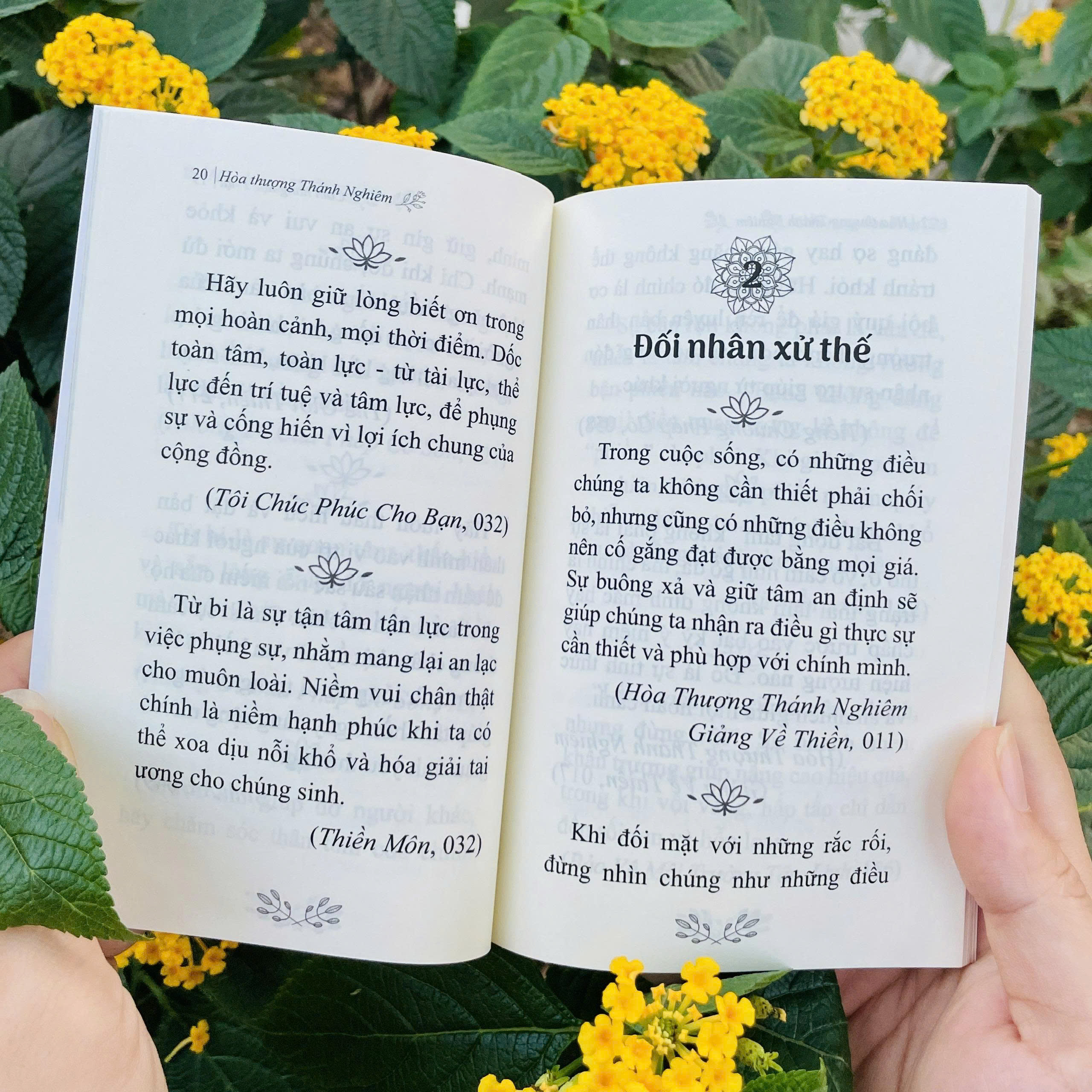 Ngôn từ trong sách mộc mạc, dễ hiểu nhưng giàu chất liệu trí tuệ. Các trích dẫn được chắt lọc từ nhiều tác phẩm như Thiền Môn, Thế Giới Thiền, Tạp chí Nhân Sinh… đều cô đọng, giàu sức gợi, giúp người đọc dễ dàng ghi nhớ và áp dụng vào thực tế cuộc sống.