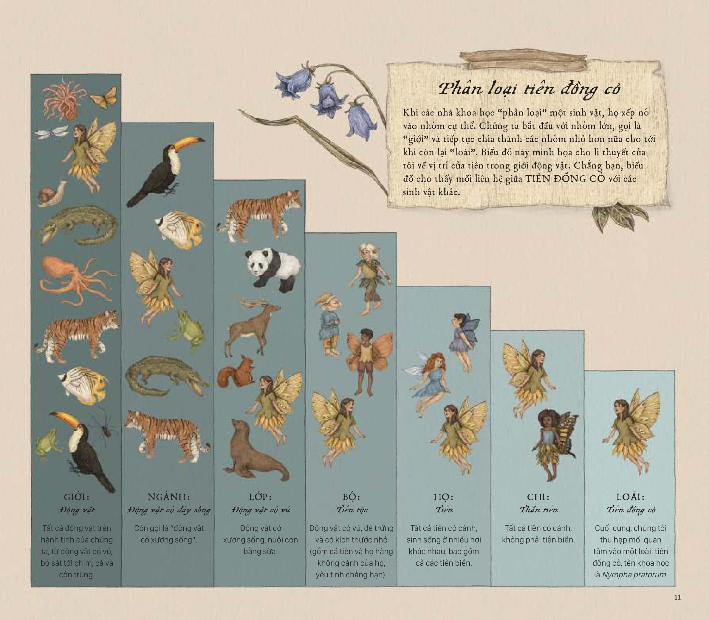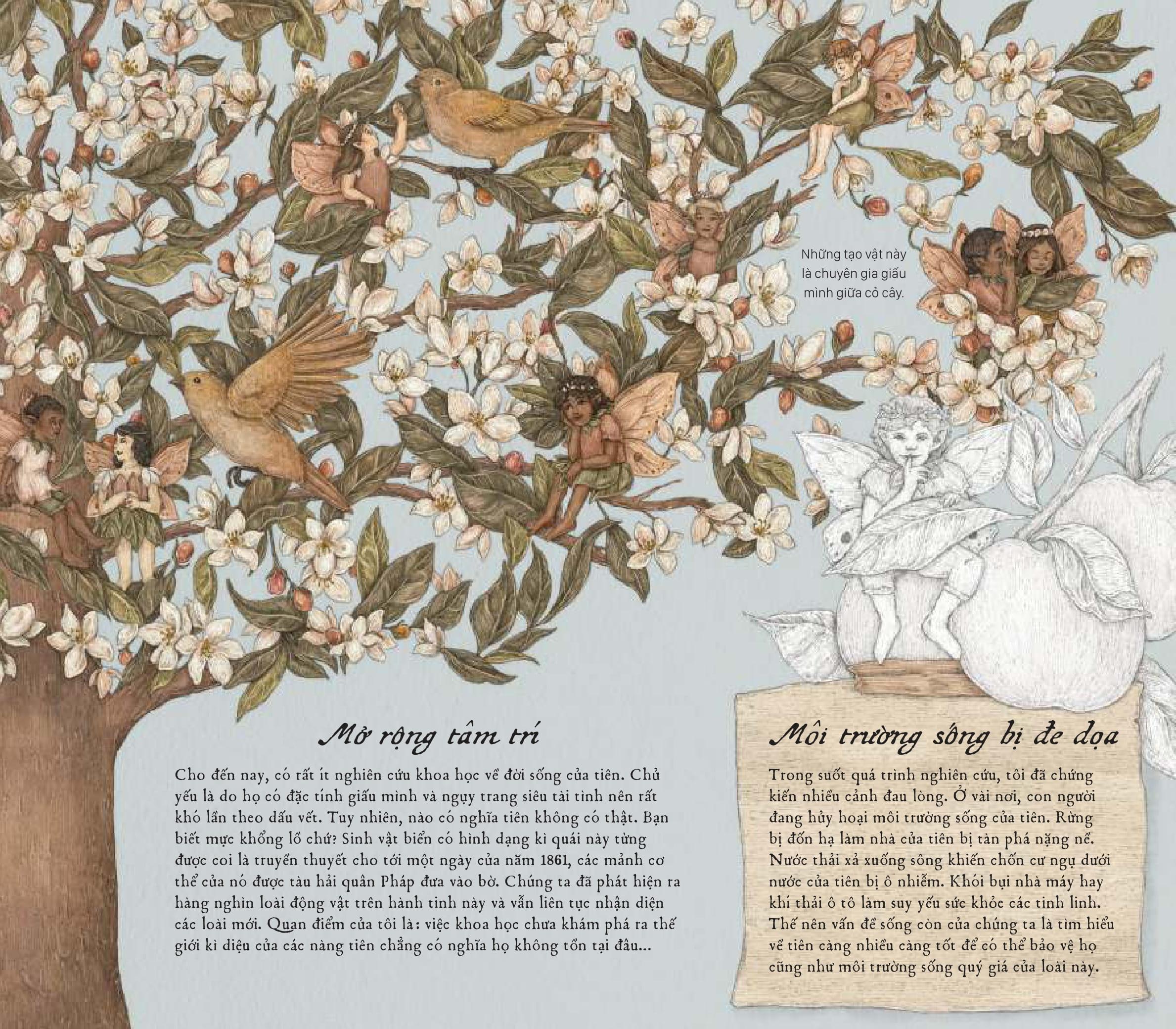 Cẩm Nang Về Tiên Bạn đọc thân mến, Bạn đã sẵn sàng cho chuyến hành trình có một không hai chưa? Vậy hãy lật giở cuốn sách này ngay thôi nào! Tiên có thật và hiện diện quanh ta, chỉ cần bạn nhanh trí, tinh mắt và đủ may mắn để trông thấy những tạo vật kì diệu này trong vườn nhà hay trên gác xép mà thôi. Biên soạn bởi nhà thực vật học lẫy lừng – Giáo sư Elsie Arbour, cuốn cẩm nang kì công này được bà gửi tới cháu gái nhằm giúp cô khám phá đời sống bí mật của các loài tiên cũng như vai trò của họ trong thế giới tự nhiên. Tập hợp nhiều ghi chú thực địa chính xác và minh họa cầu kì, từng trang sách tiết lộ đa dạng các loài tiên khác nhau trên khắp đ.ịa cầu, đi sâu phân tích đặc điểm nhận dạng, môi trường sống, tập tính và cả ngôn ngữ bí ẩn của họ. Bạn chắc chắn sẽ phải kinh ngạc trước thế giới các loài tiên siêu sống động và thú vị đấy!