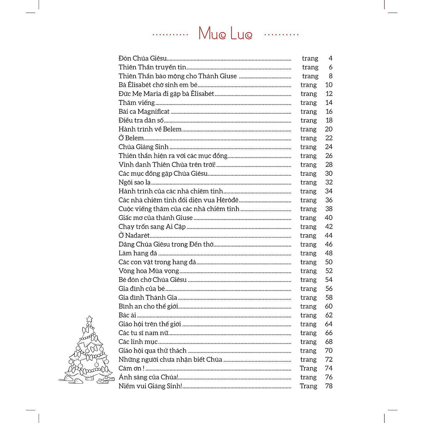 - Là quyển sách tô màu dành cho trẻ từ 3 đến 6 tuổi, gồm 38 lời cầu nguyện và hình vẽ chủ đề Mừng giáng sinh tuyệt đẹp giúp các em thiếu nhi học cầu nguyện với Chúa Giêsu Hài Đồng qua trò chơi tô màu.