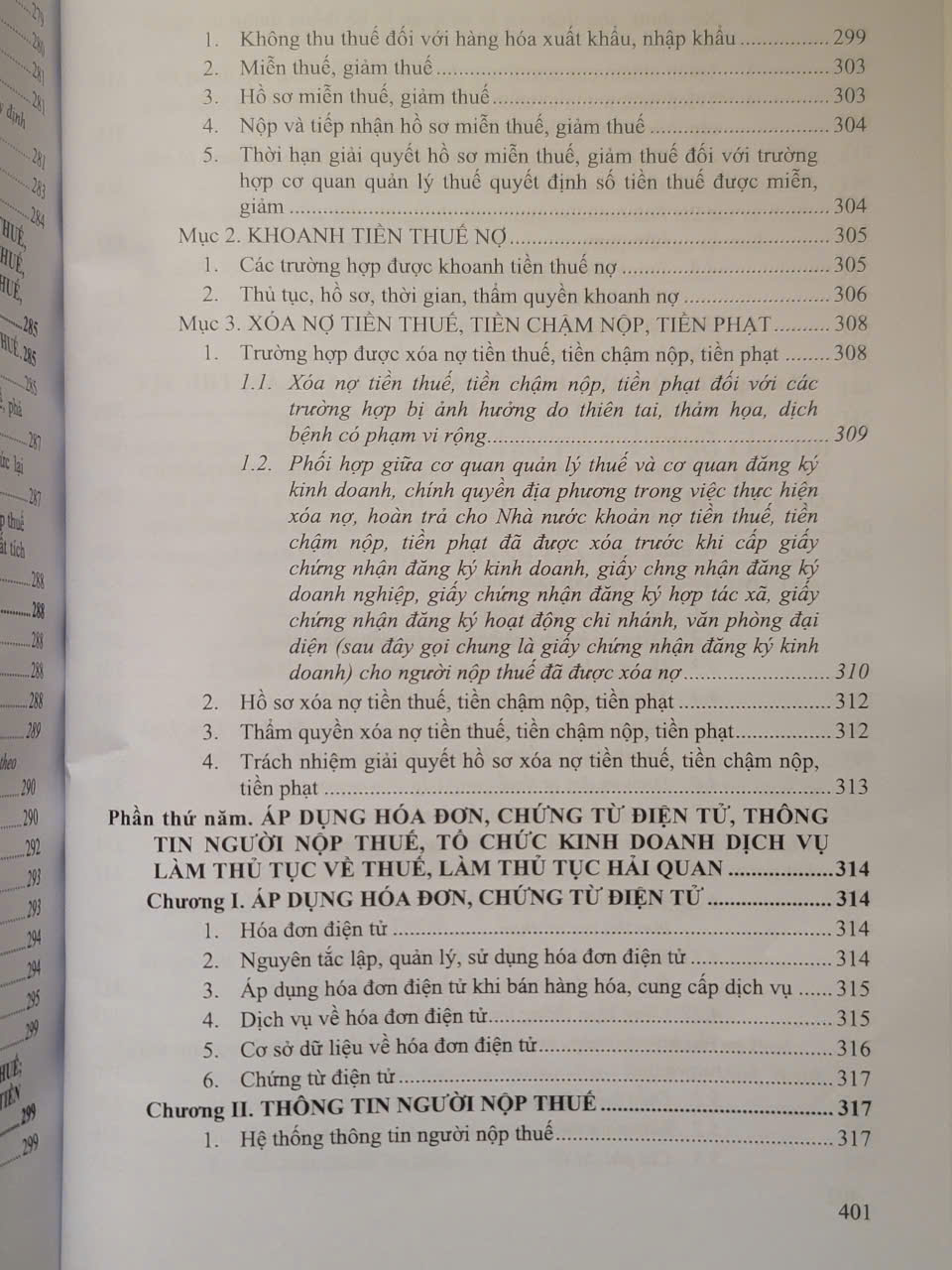Phần thứ tư. TRÁCH NHIỆM HOÀN THÀNH NGHĨA VỤ NỘP THUẾ, THỦ TỤC HOÀN THUẾ, KHÔNG THU THUẾ, MIỄN THUẾ, GIẢM THUẾ; KHOANH TIỀN THUẾ NỢ: XÓA NỢ TIỀN THUẾ, TIỀN CHẬM NỘP, TIỀN PHẠT.