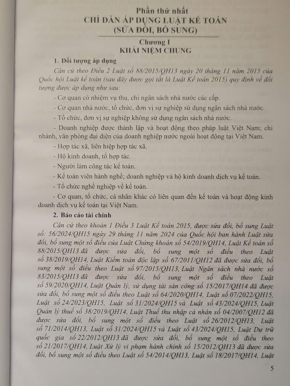 Phần thứ nhất. CHỈ DẪN ÁP DỤNG LUẬT KẾ TOÁN (SỬA ĐỔI, BỎ SUNG)