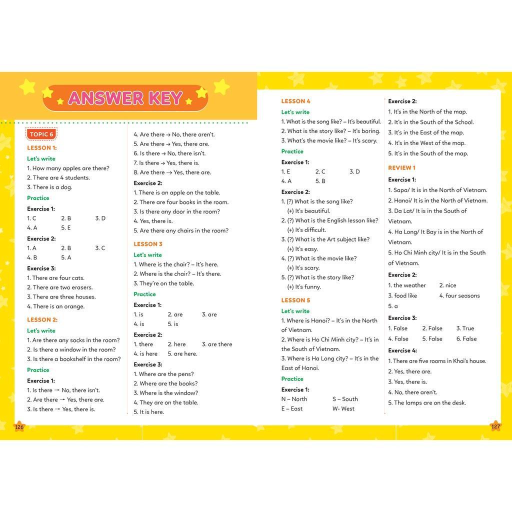 - Cấu trúc mỗi bài học khoa học, chặt chẽ – Áp dụng phương pháp học mới Mỗi bài học giới thiệu 1 cấu trúc, cách sử dụng và ghi nhớ cấu trúc đó, với phương pháp ghi nhớ cấu trúc bằng cách tập viết theo từng bước với độ khó tăng dần. Các bài tập luyện tập đa dạng, giúp các em tiếp cận và làm quen với các dạng bài, biết cách vận dụng cụ thể trong nhiều trường hợp khác nhau. Cuối sách là đáp án chi tiết, giúp tự đánh giá lại mức độ hiểu bài và lên kế hoạch ôn tập lại khi cần thiết.