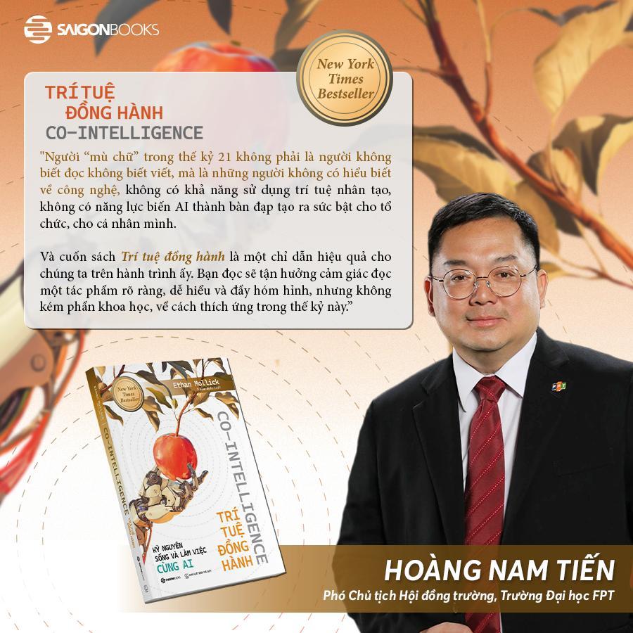 Cuốn sách hân hạnh được Phó Chủ tịch Hội đồng trường, Trường Đại học FPT - Anh Hoàng Nam Tiến, anh Đào Trung Thành (Phó Viện trưởng Viện Công nghệ Blockchain và Trí tuệ nhân tạo - ABAII) cùng các chuyên gia & doanh nhân viết lời giới thiệu, đồng thời đề xuất với bạn đọc như một nguồn cảm hứng mạnh mẽ và thiết thực trong hành trình khám phá và thay đổi tư duy về trí tuệ đồng hành.