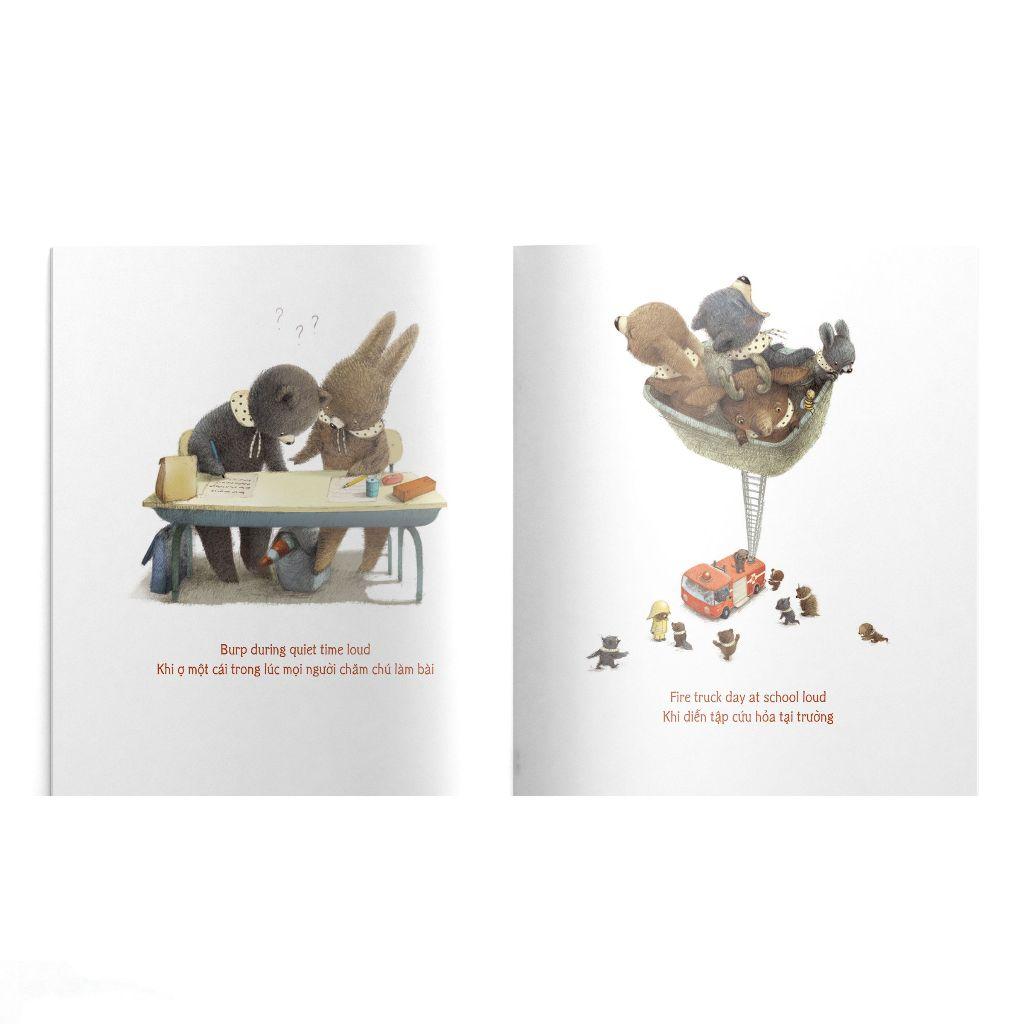 - Khoảnh khắc im lặng (Song ngữ Anh-Việt) Tác giả: Deborah Underwood biên soạn, Renata Liwska minh họa Dịch giả: Vi Hạ Kích thước: 21 x 25 cm Giá bìa: 55.000đ Số trang: 32 Trọng lượng: 200gr Mã ISBN: 978-604-378-379-7 Mã sản phẩm: 8936203363951 Hình thức: Bìa mềm, in màu toàn bộ Sách do Công ty Cổ phần Văn hóa Đông A và NXB Dân trí liên kết ấn hành NỘI DUNG SÁCH: Cuốn sách là bộ sưu tập những khoảng lặng mà bất kỳ ai cũng có thể bắt gặp trong đời: khi là người đầu tiên thức giấc, khi rỉ tai nhau những bí mật, khi chăm chú tô màu… Và còn những khoảnh khắc im lặng nào khác nữa, mời các em cùng khám phá nhé. “Những truyện kể trước giờ đi ngủ quá đỗi thú vị và hấp dẫn.” - School Library Journal Sách dành cho độ tuổi mầm non.