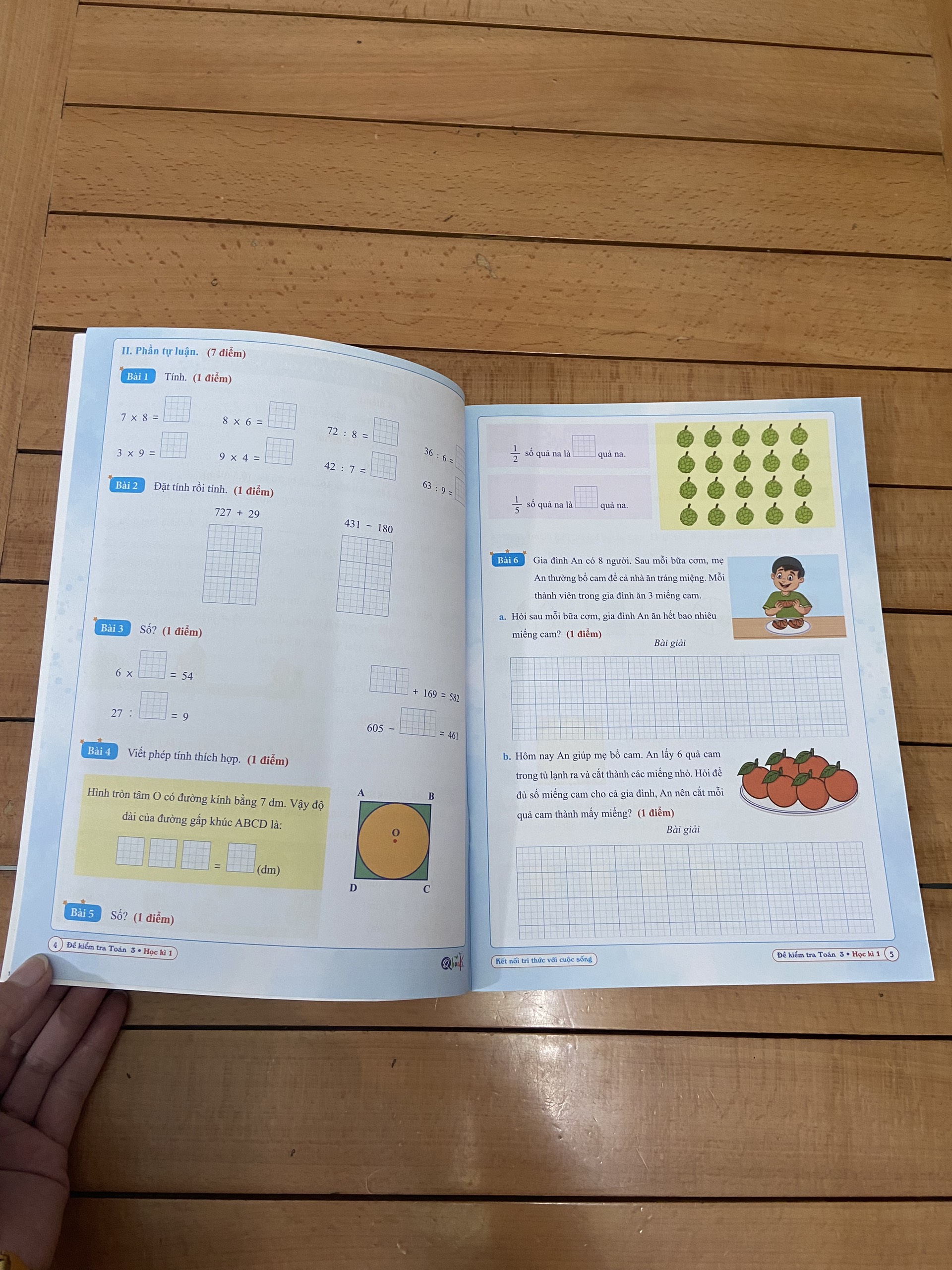 Đề kiểm tra toán 3 - Học kì 1. Là cuốn sách được biên soạn theo chương trình học của bộ sách Kết nối tri thức với cuộc . Cuốn sách gồm 20 để ôn tập, trong đó có 5 đề ôn tập kiểm tra giữa kỳ 1 Và 15 để ôn tập kiểm tra cuối kỳ 1.