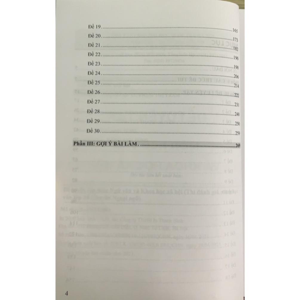 Phần hai : Đề luyện tập : Cung cấp 30 đề luyện tập theo cấu trúc đề thi tuyển sinh vào lớp 10 THPT Chuyên ngoại ngữ. Nội dung đề thi nằm trong chương trình Ngữ văn và Khoa học xã hội Trung học cơ sở, chủ yếu là lớp 9.