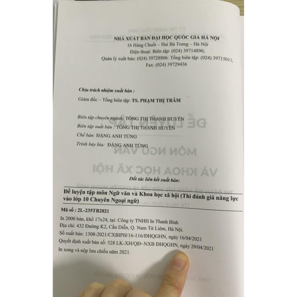 Công ty Học Liệu Sư Phạm giới thiệu: Để giúp các thầy cô giáo và các em học sinh có thêm tài liệu ôn tập, củng cố kiến thức và kĩ năng cho kì thi tuyển sinh vào 10 THPT Chuyên Ngoại ngữ cũng như kì thi vào lớp 10, chúng tôi biên soạn cuốn sách Đề luyện tập môn Ngữ văn và Khoa hoa học xã hội thi đánh giá năng lực vào lớp 10 Chuyên Ngoại ngữ. Cuốn sách bám sát định dạng đề đã được công bố trên website của Trường THPT Chuyên Ngoại ngữ và định hướng ra đề mới nhất của Sở Giáo dục và Đào tạo Hà Nội. Cuốn sách đã bổ sung thêm phần Trắc Nghiệm Khoa học xã hội (Tổ hợp Sử, Địa, Giáo dục Công dân).
