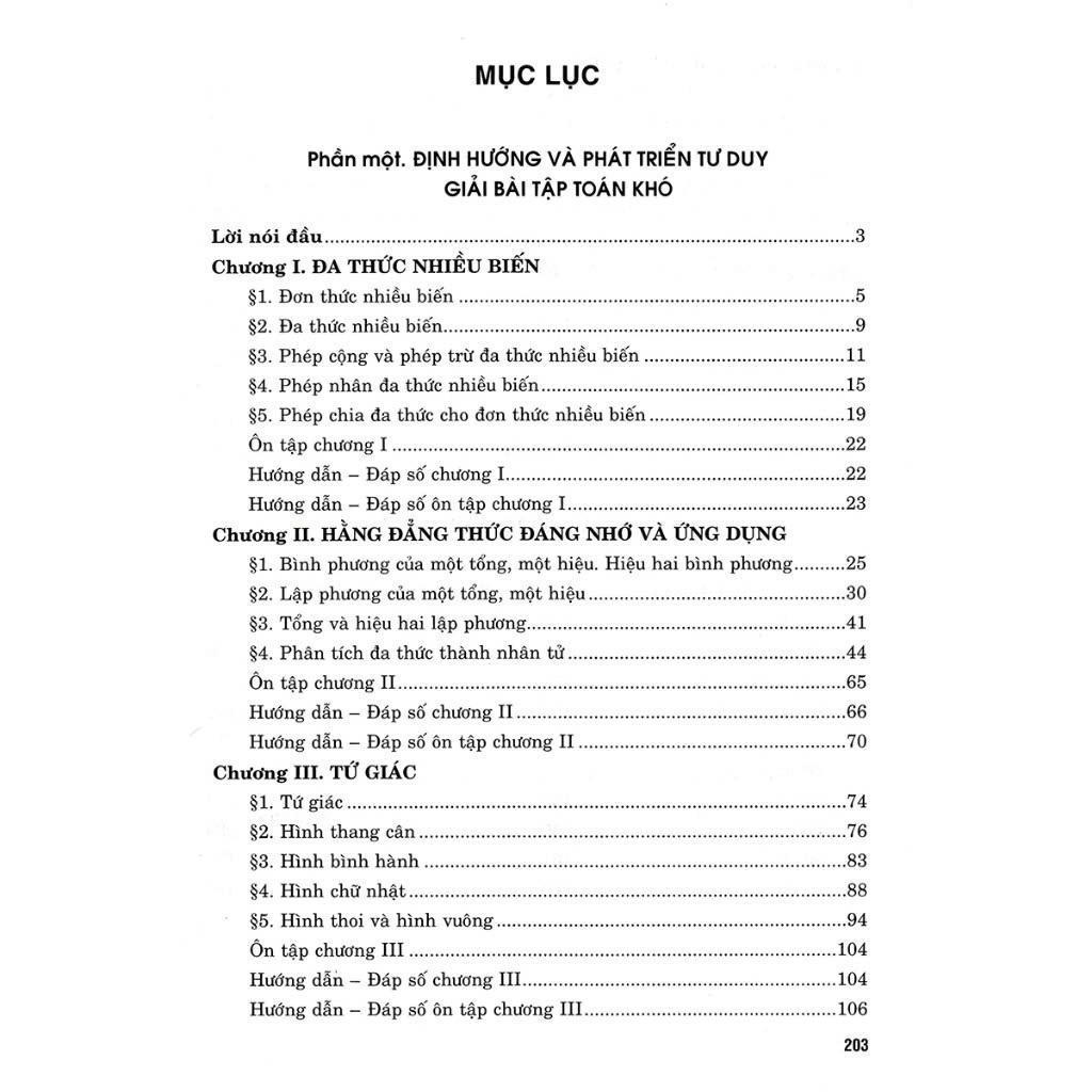 Sách - Định Hướng Và Phát Triển Tư Duy Giải Bài Tập Toán Khó Lớp 8 - Dùng Chung Cho Các Bộ SGK Hiện Hành "Định hướng và phát triển tư duy giải bài tập toán khó lớp 8" được biên soạn nhằm giúp các em học sinh khá, giỏi lớp 8 có một tài liệu tham khảo để bồi dưỡng học sinh giỏi môn Toán. Cuốn sách gồm hai phần: • Phần một. Định hướng và phát triển tư duy giải bài tập toán khó Trong từng bài là các bài toán tương tự các bài tập trong sách giáo khoa, bài tập quen thuộc, bài tập đơn giản nhưng nếu suy nghĩ và không ngừng suy nghĩ sẽ tìm đến được những bài toán hay hơn, bài toán khó hơn. • Phần hai. Các đề toán chọn lọc Gồm 10 đề toán và hướng dẫn giải, mỗi đề toán có 5 bài toán được chọn lọc tỉ mỉ nhằm giúp các em học sinh khá, giỏi có các bài toán để ôn luyện, bồi dưỡng năng lực giải toán khó. Cuốn sách nhằm giúp các em học sinh yêu thích môn Toán hơn, đồng thời tác giả mong rằng cuốn sách là tài liệu tham khảo tốt cho thầy giáo, cô giáo dạy Toán và các bậc phụ huynh học sinh. Dù tác giả đã rất cố gắng trong quá trình biên soạn nhưng cuốn sách có thể còn những sai sót nhất định. Rất mong nhận được ý kiến đóng góp quý báu từ bạn đọc.