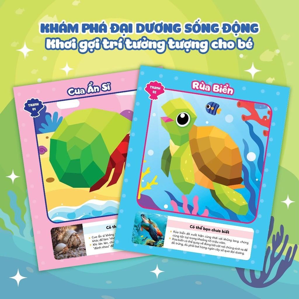 Bộ sách "Ghép hình sticker 3D Đại dương" (gồm 3 cuốn) là hành trình khám phá đại dương kỳ thú dành cho các bé mầm non. Mỗi cuốn sách giới thiệu nhiều loài sinh vật biển đa dạng, kèm theo các thông tin thú vị về chúng. Bé sẽ sử dụng các mảnh sticker 3D có sẵn để ghép thành hình con vật tương ứng, vừa chơi vừa học vừa khám phá những câu chuyện thú vị về cuộc sống đại dương. Bộ sách không chỉ giúp bé phát triển khả năng quan sát, tư duy và sự khéo léo, bộ sách còn nuôi dưỡng tình yêu thiên nhiên và thắp lên ngọn lửa khám phá trong tâm hồn trẻ thơ.